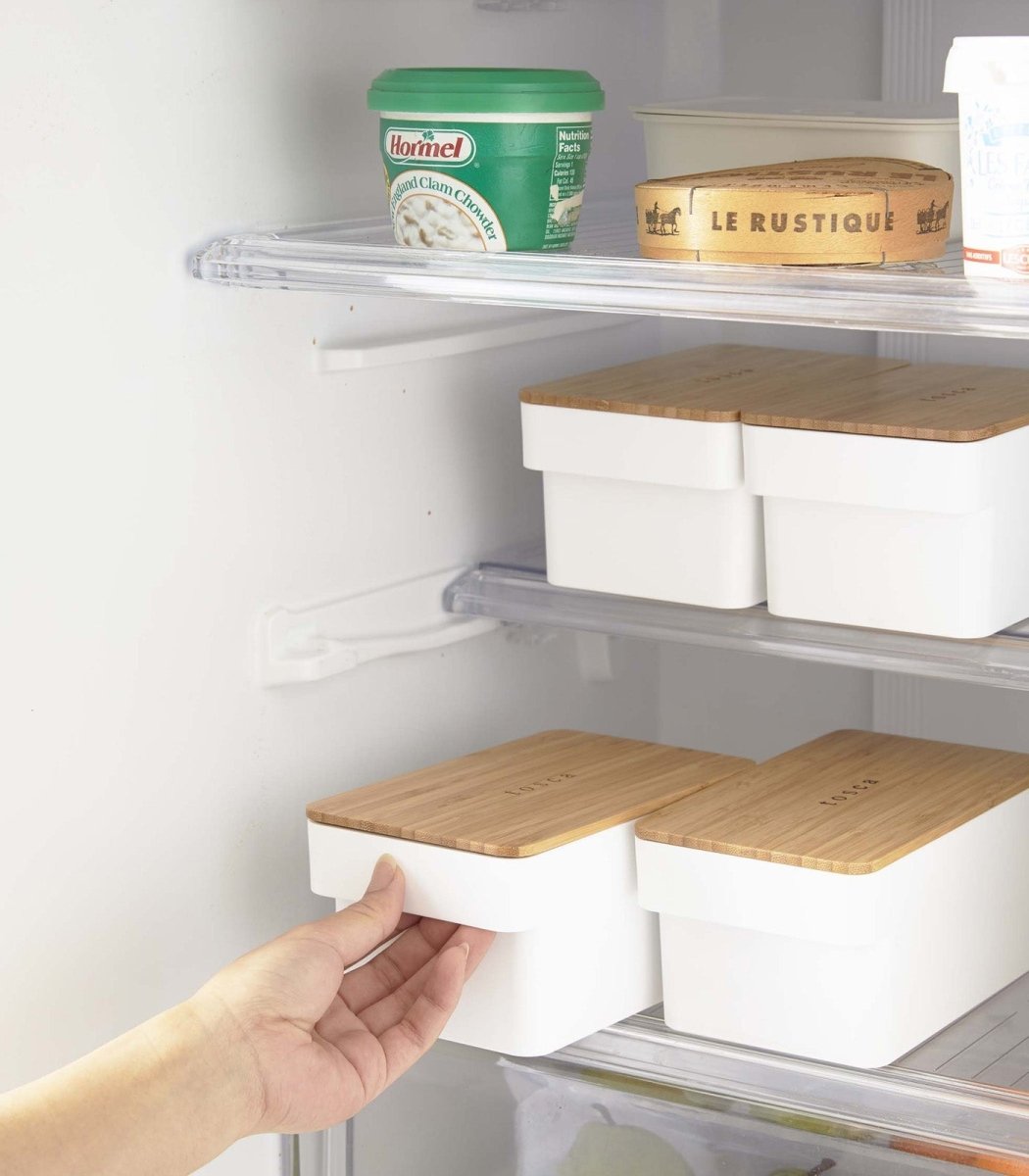 Store leftovers and prepped meals in this elegant container featuring a convenient handle for easy access. The bamboo lid lends a stylish look that will upgrade your entire fridge interior, and is also lined with silicon for airtight packing. Also the perfect size for blocks of butter, you can place it right on the dining table without worry of cluttering your dinner spread. You might find that one is not enough, but luckily these containers also look fabulous when they're lined up in multiples.