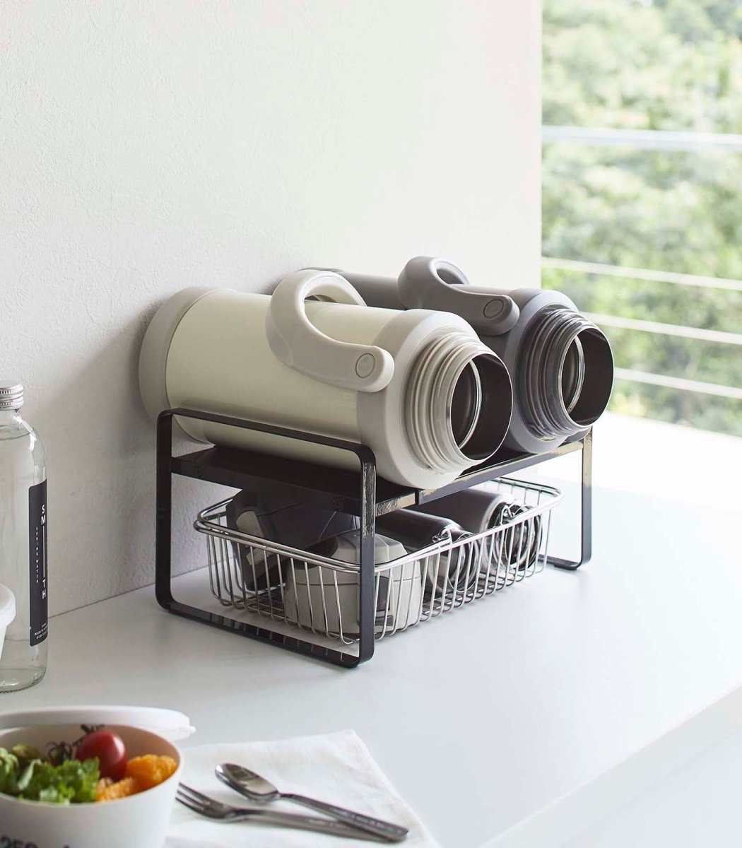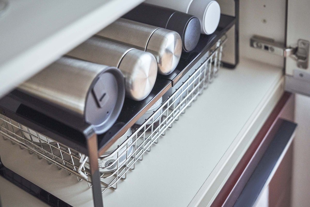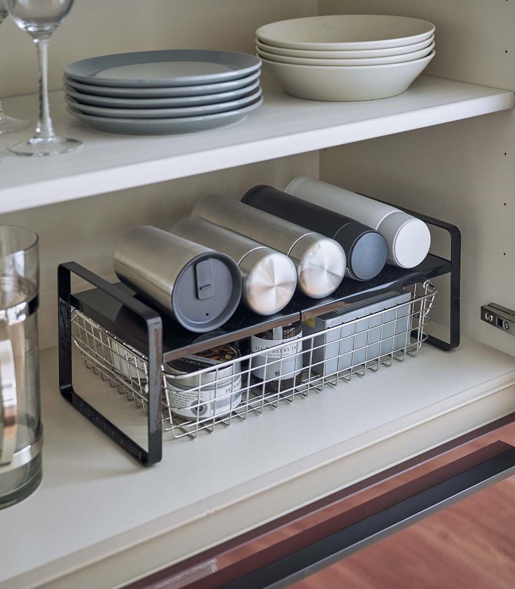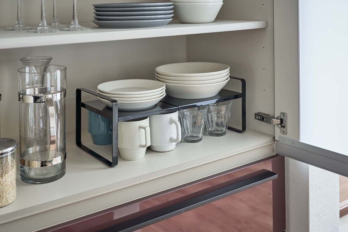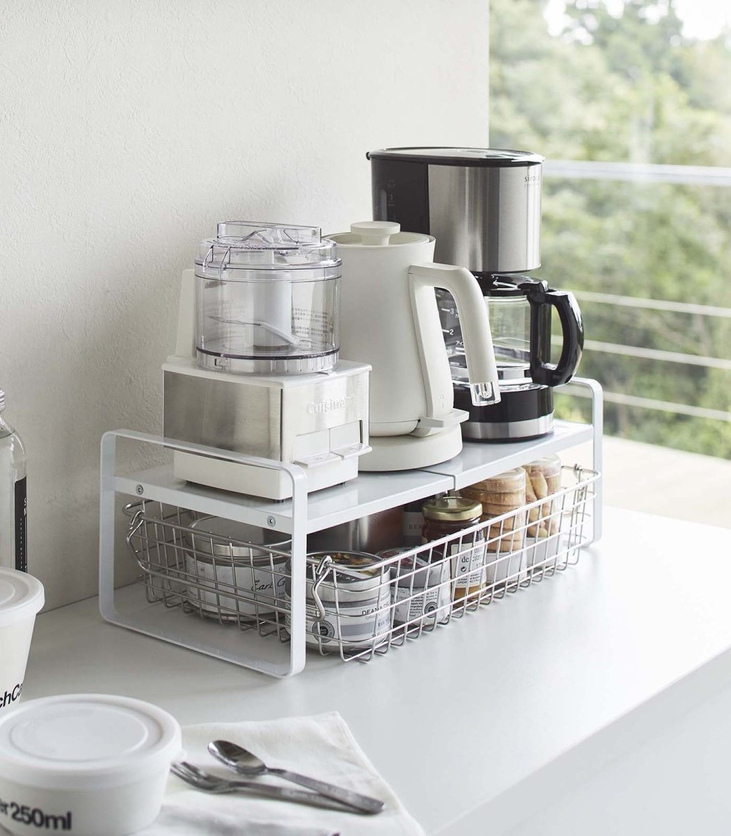 Tight on cupboard or countertop space? This brilliant expandable riser’s got your back. Create extra vertical storage to stack your dishes, store your water bottles, or assemble a little coffee-brewing station. Expand or contract to match your space perfectly and maintain a spotless aesthetic.