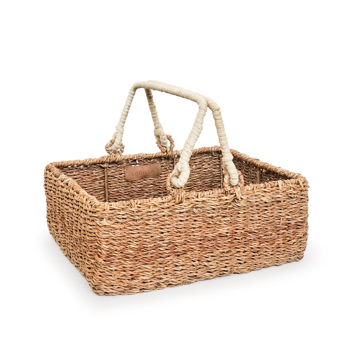 Constructed from seagrass with reinforced jute handles for comfortable carrying. The natural and white color options integrate seamlessly into existing decor. As each basket is handcrafted, slight variations in design, color, and size occur, ensuring your piece is unique.