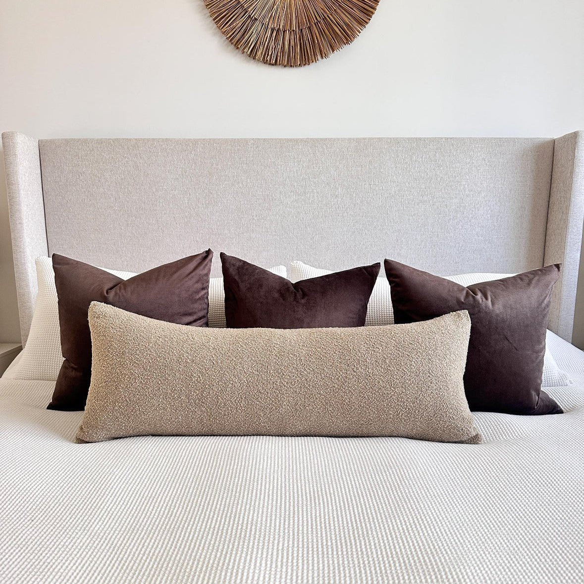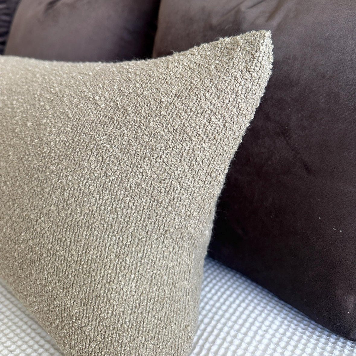 Add soft texture and timeless warmth to your space with this taupe bouclé long lumbar pillow cover. Designed with a cozy, nubby bouclé fabric in a versatile taupe tone, this piece brings a layered, designer feel to beds, sofas, and benches—perfect for creating a curated, lived-in look.