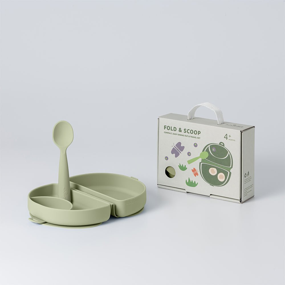 Silifold Collapsible Silicone Travel Feeding Plate & Spoon Set - Pistachio