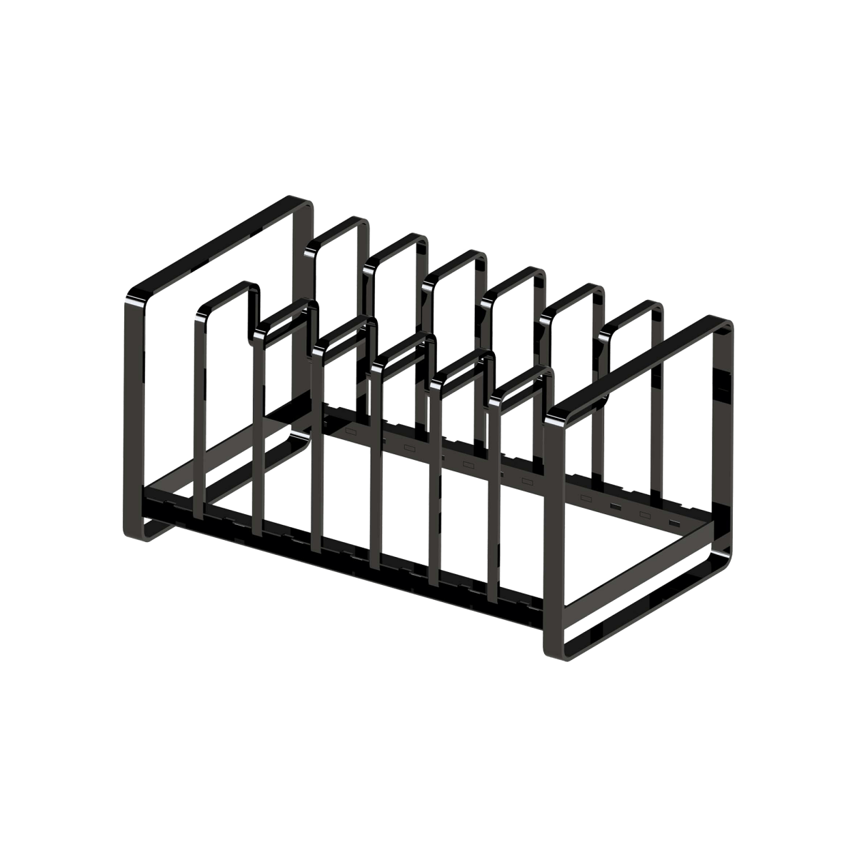 Say goodbye to the precarious stack of frying pans and pot lids in the cupboard, and hello to a tidy and sensible storage system. This foolproof rack features adjustable dividers and a sturdy steel frame that can be stored in kitchen cabinets or under the sink. The dividers feature a nook for the handle, making it much easier to quickly access the pot lid you need. Here’s to smooth frying, stewing, and braising!