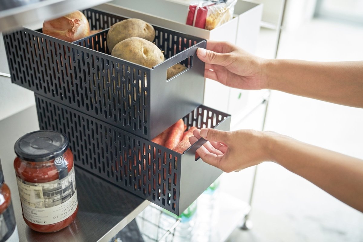 These storage baskets are great for compartmentalizing vegetables, whether in the crisper, cabinets, or counters. Movable dividers will separate your produce nicely. Save room by stacking baskets on top of each other. Don’t worry about smothering or stifling your vegetables: the baskets are designed to keep your vegetables fresh by allowing air to flow with mesh sidings and raised bottoms.