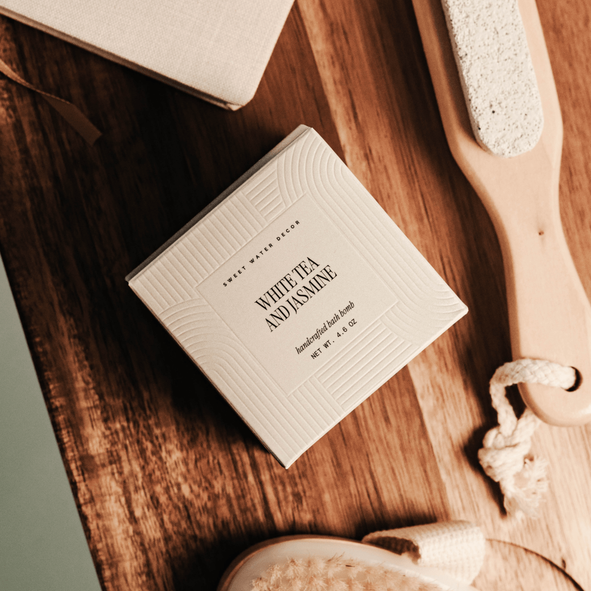 This 4.6 oz handcrafted bath bomb combines white tea and jasmine with premium fragrance oils and natural essential oils for a calming aromatherapy experience. Made with non-toxic, skin-loving ingredients, this vegan bath bomb dissolves in warm water to create a personal spa escape at home.