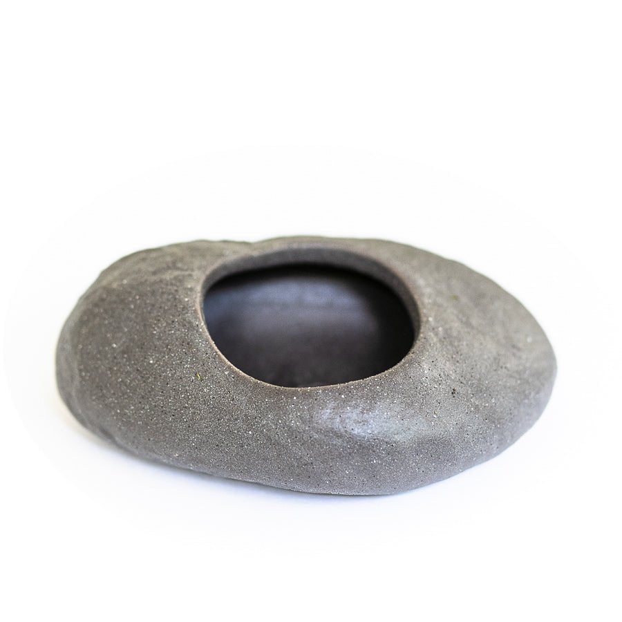 This gray ceramic stone air plant holder combines natural aesthetics with functional design. Crafted to resemble a smooth river stone, the holder features an organic shape that complements any indoor space while providing an ideal display for your Tillandsia air plant.