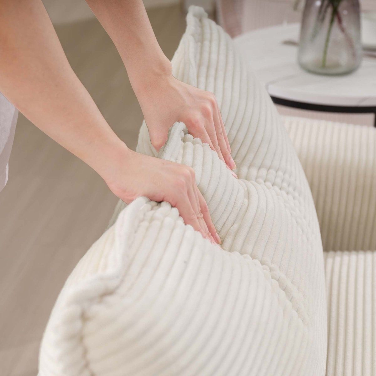 Experience the ultimate in relaxation with this Corduroy Deep Seat Cloud Accent Chair with Ottoman Set. This luxurious seating solution combines plush, deep-seat comfort with sophisticated modern design, creating an inviting focal point in any living room, bedroom, or reading nook.