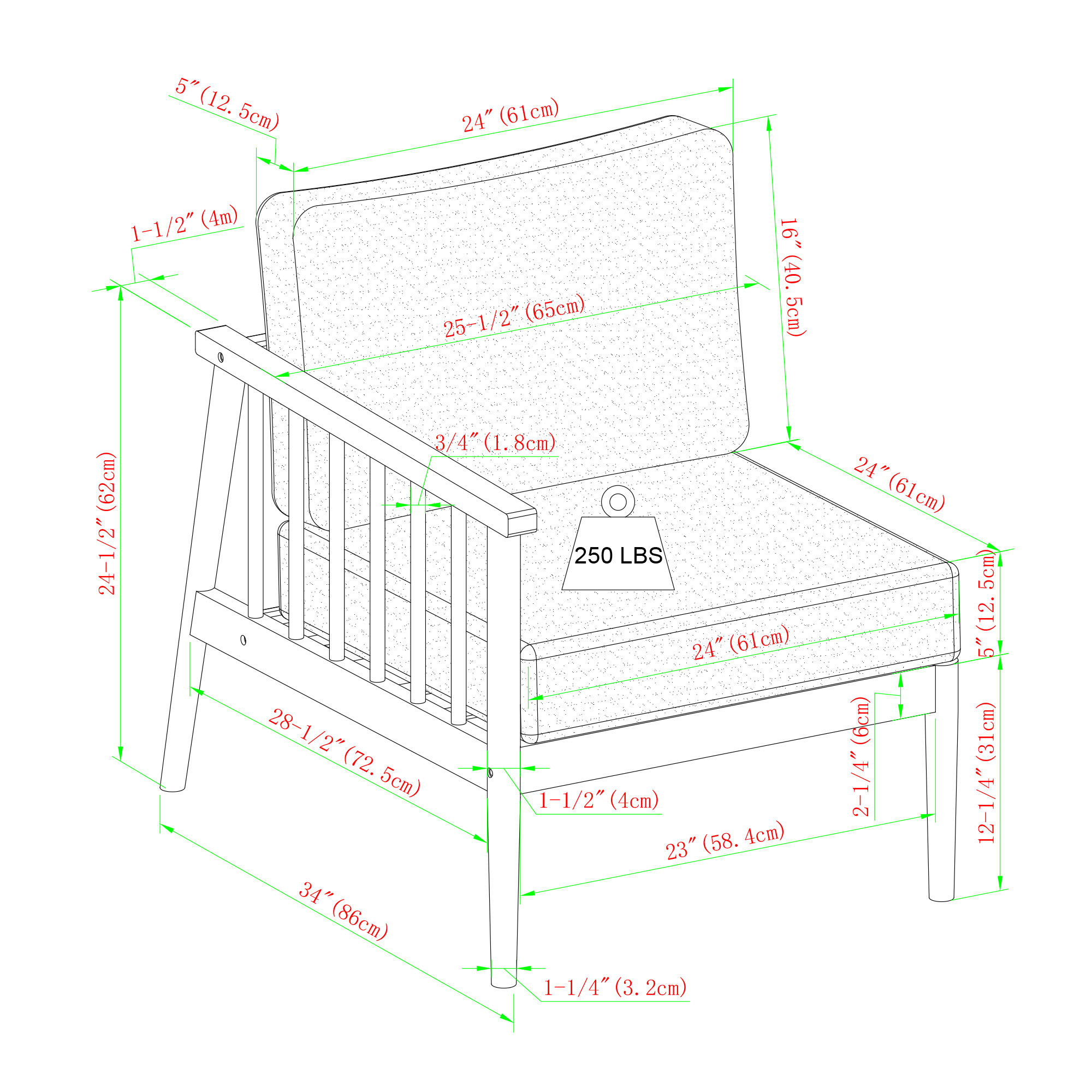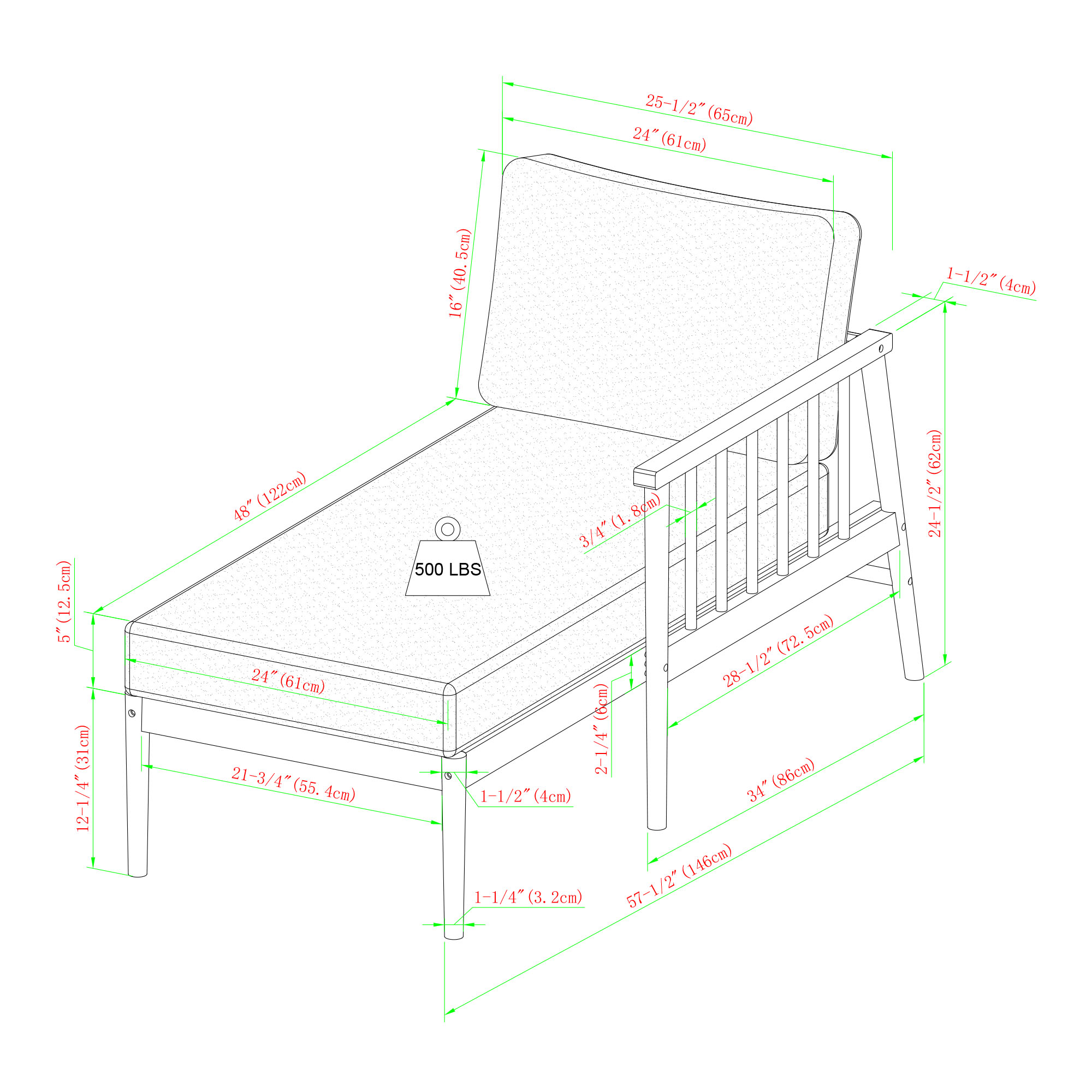 The set includes a right-arm chaise lounge, an armless middle sectional piece, and a left-arm end piece. Configure these components to create an L-shaped sectional or arrange them to suit your specific space requirements. The chaise lounge measures 57.5" L x 25.5" W x 24.5" H, while the middle and left-arm pieces each measure approximately 24" in length and width, providing versatile seating arrangements.