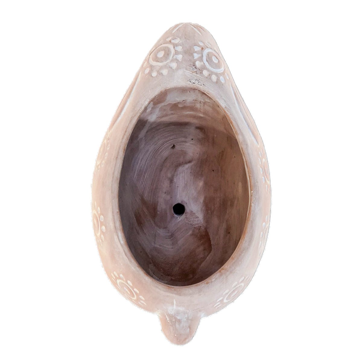 Designed for both indoor and outdoor environments, this clay planter includes one drainage hole to prevent water accumulation and root rot. The natural terracotta material is suitable for garden use, patio displays, or as desk and shelf decor. Fill it with colorful flowers, trailing succulents, or small houseplants to create an eye-catching display.