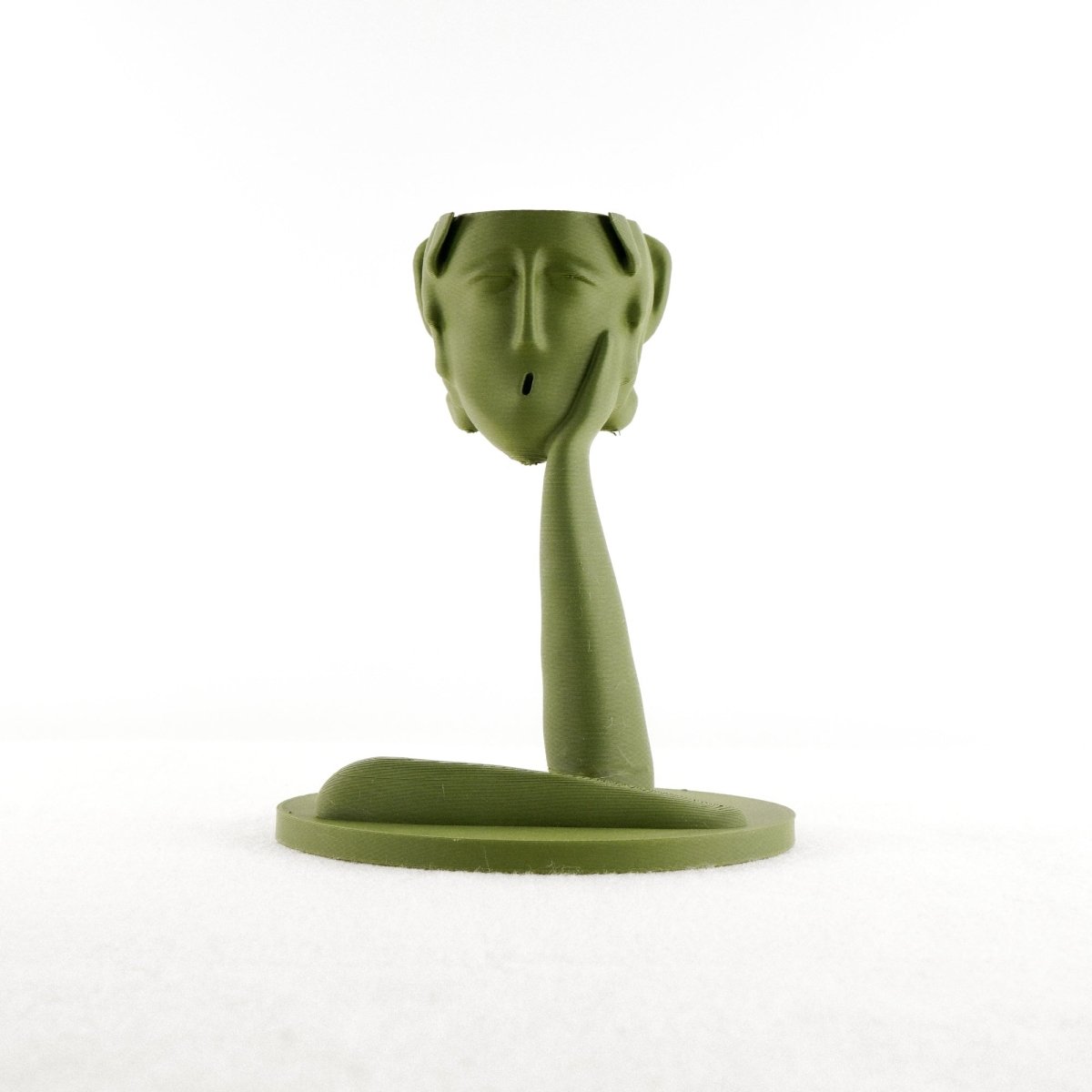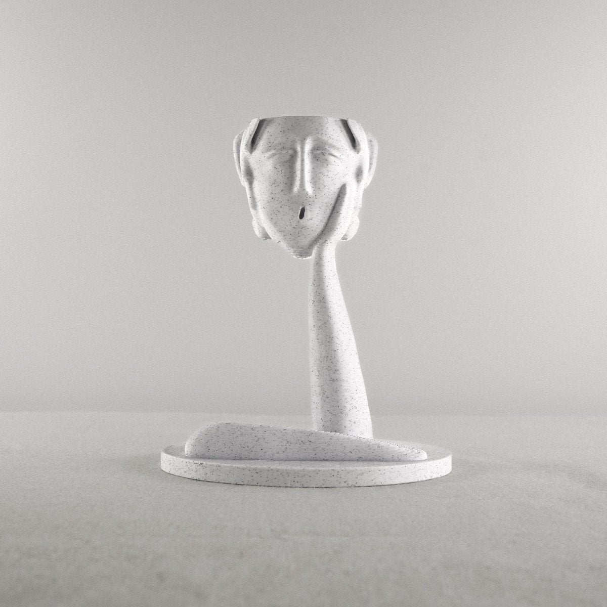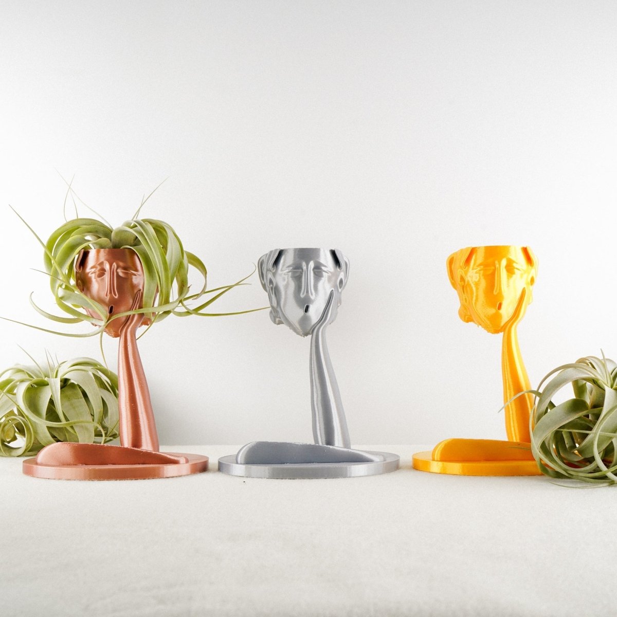 The Medusa Air Head planter combines sculptural design with functional versatility. This abstract face planter features a distinctive hand-supporting-head design that creates an artistic focal point in any space. The 2.5" planting capacity accommodates air plants or faux succulents, making it ideal for low-maintenance indoor gardening.