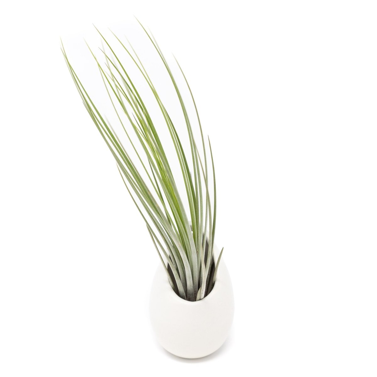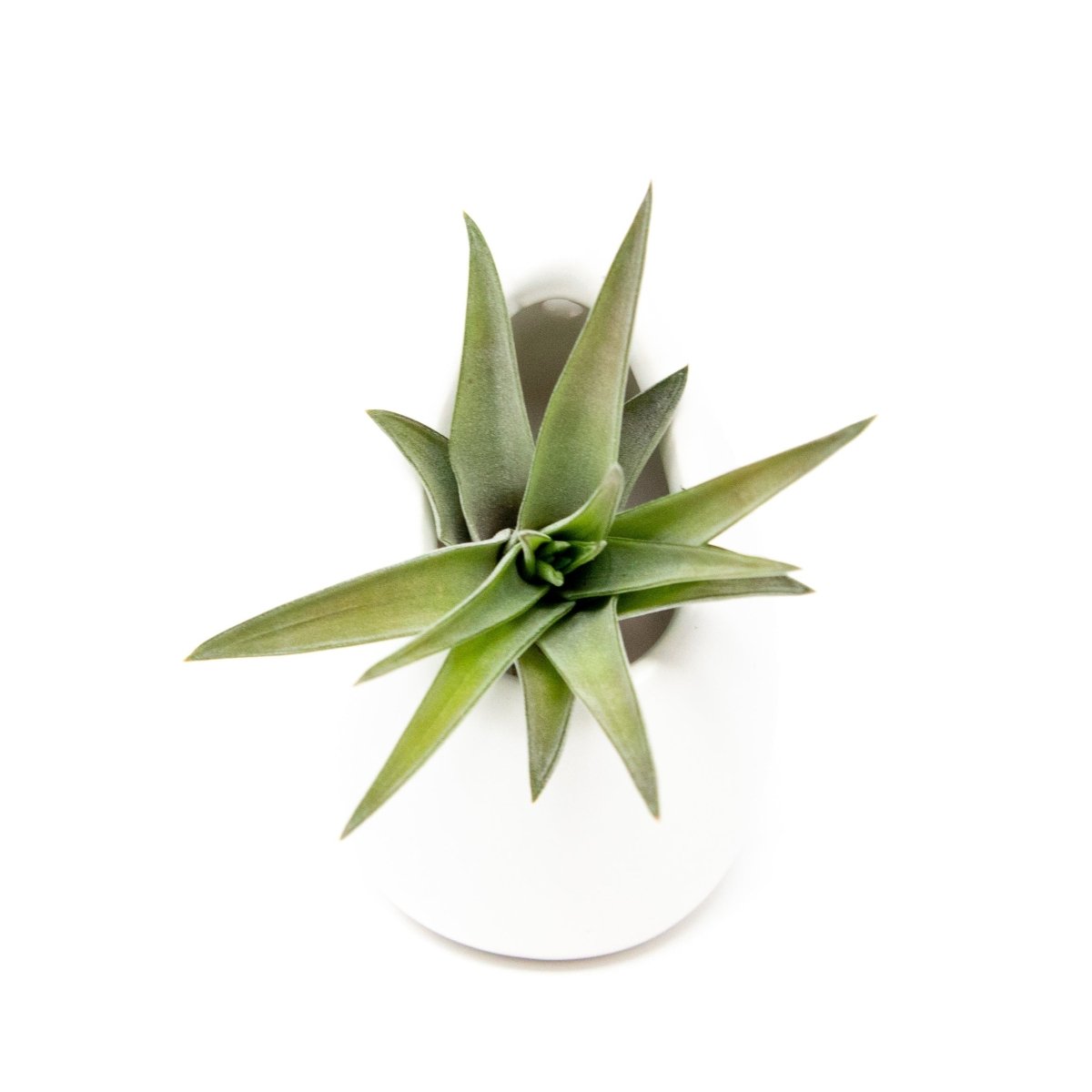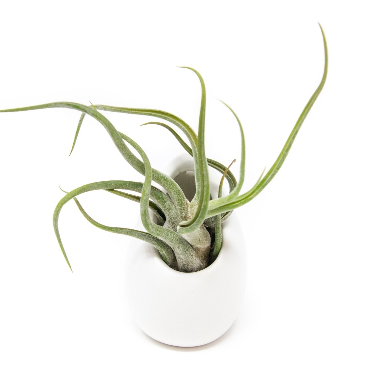 At 2 inches wide and 3.5 inches tall, this ceramic container provides the right proportions for air plants and compact succulents. The teardrop shape offers adequate depth for root systems while maintaining a sleek profile. Air plant varieties that thrive in this planter include Harrisii, Abdita, Caput Medusae, Streptophylla, Juncea, and Circinata. Small succulents and bromeliads also fit comfortably within the dimensions.