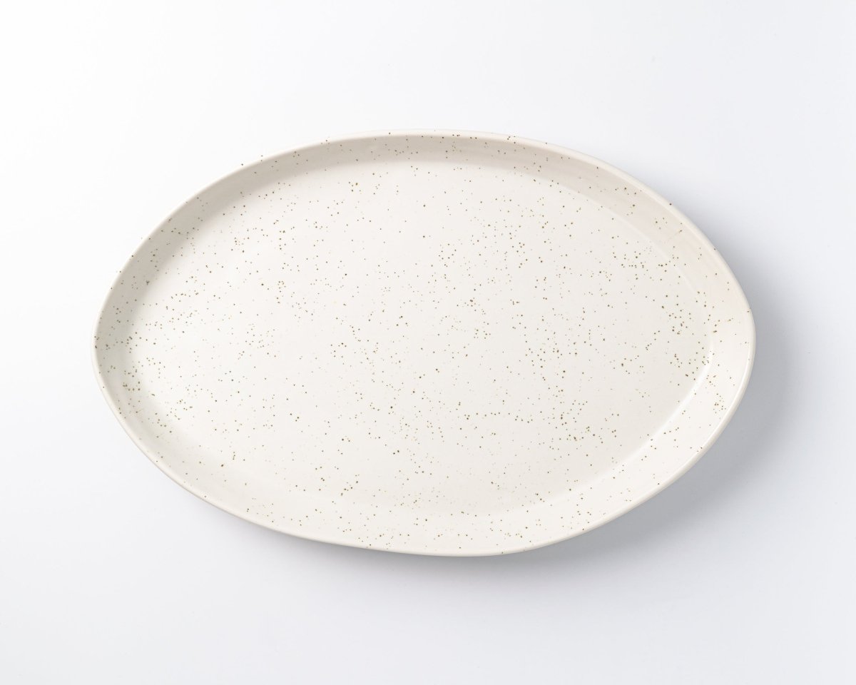 This 15" oval serving platter offers the capacity needed for main courses, roasted vegetables, appetizers, or holiday meals. The organic outline creates a versatile presentation piece that works as a standalone centerpiece or pairs with the Ripple Tableware collection.