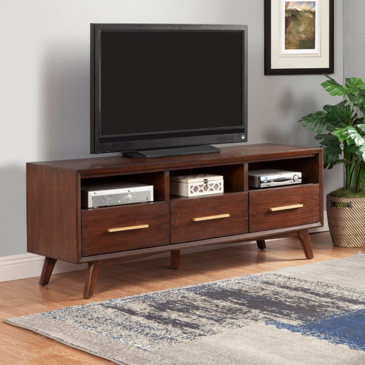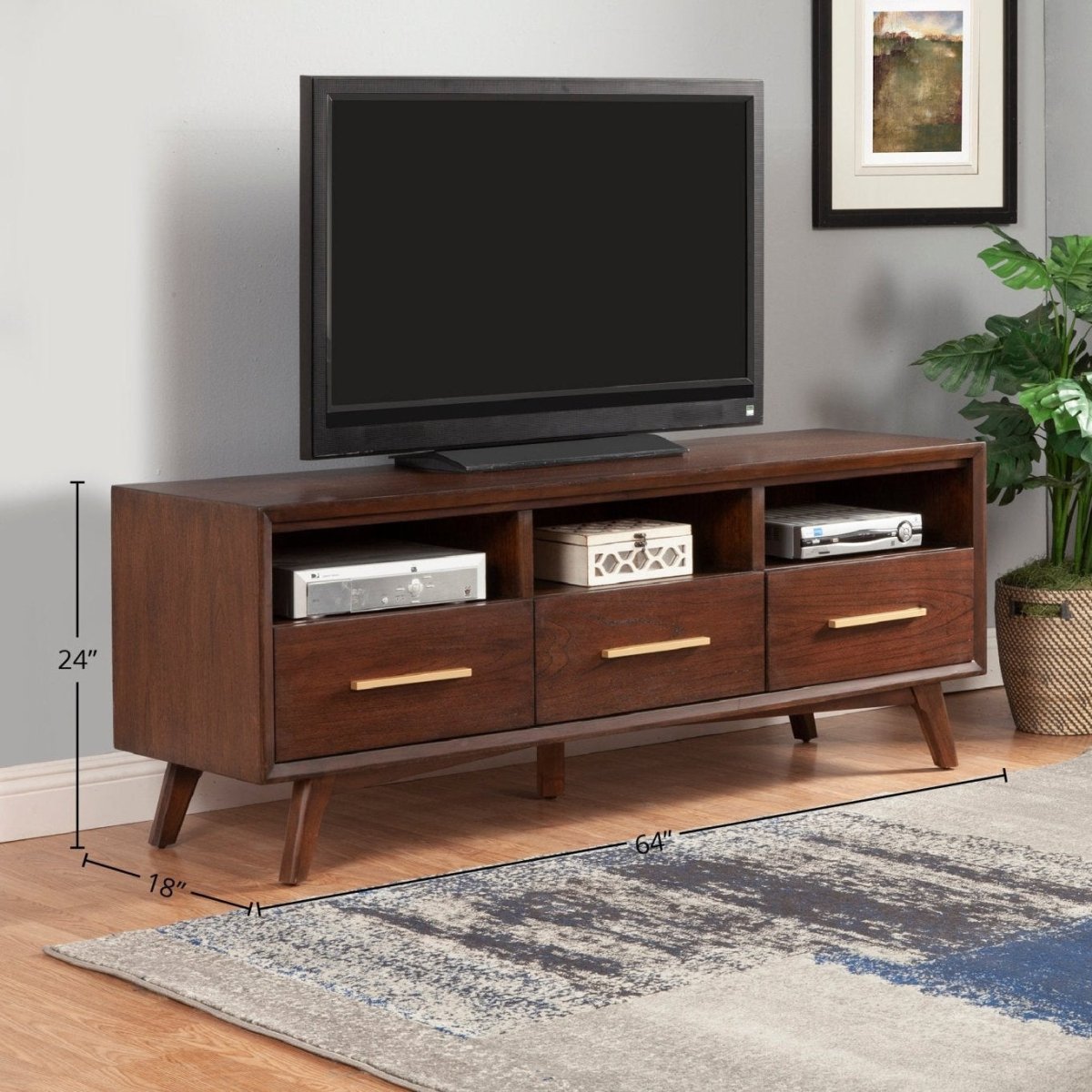 Transform your living room with the Arden Mid-Century TV Console—a stunning 64" entertainment center that combines timeless design with practical functionality. This versatile piece serves as the perfect focal point while keeping your space organized and clutter-free.