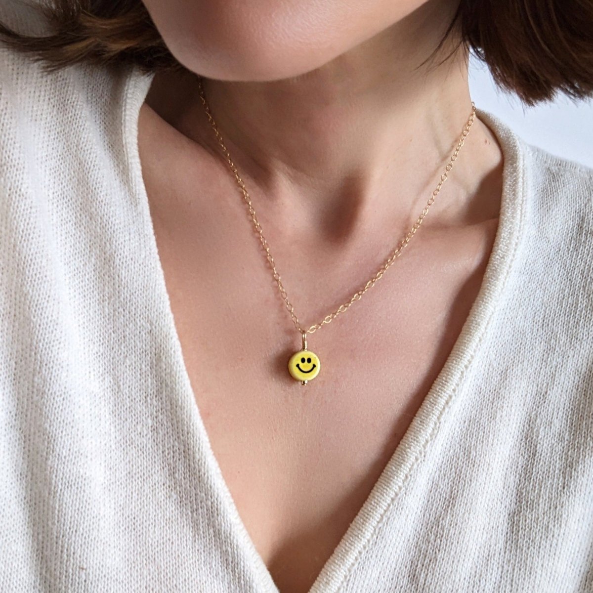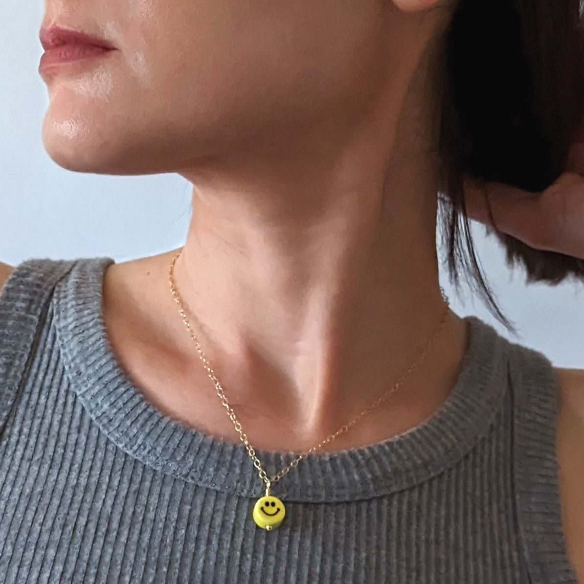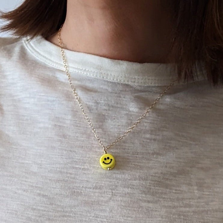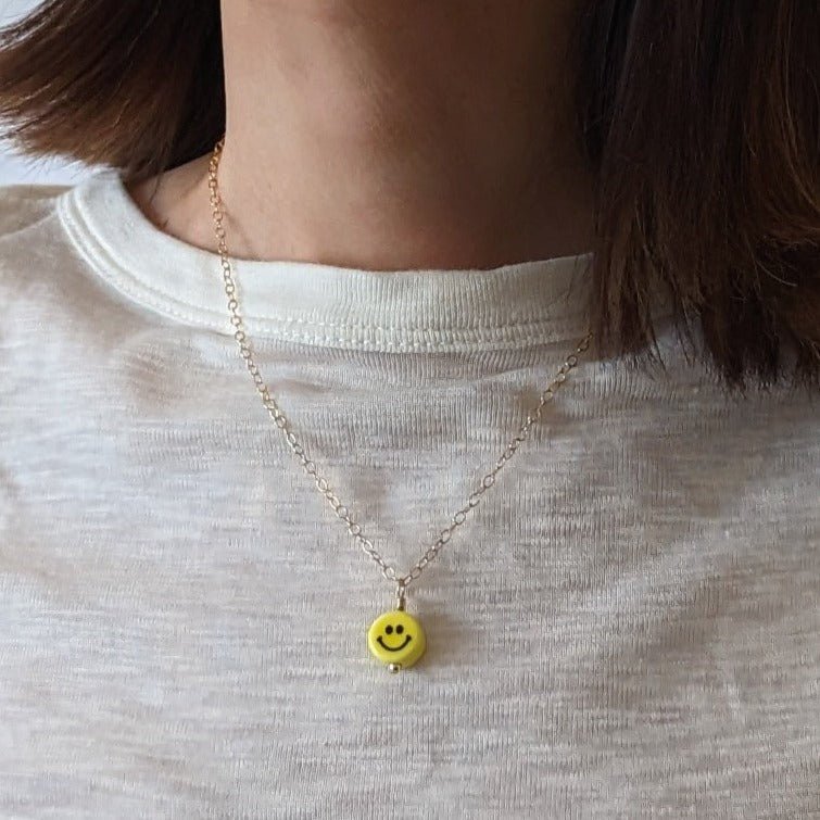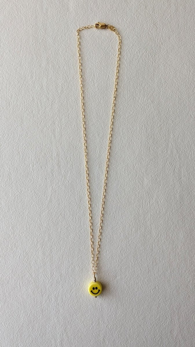 The Smiley Ceramic Charm Necklace is a playful nod to the neon-bright, carefree energy of the '90s — think Lisa Frank stickers, butterfly clips, and Tamagotchis. A hand-crafted ceramic smile charm sits on a delicate 14k gold-filled chain, striking the perfect balance between nostalgic fun and grown-up elegance. It's the kind of piece that makes people smile back.