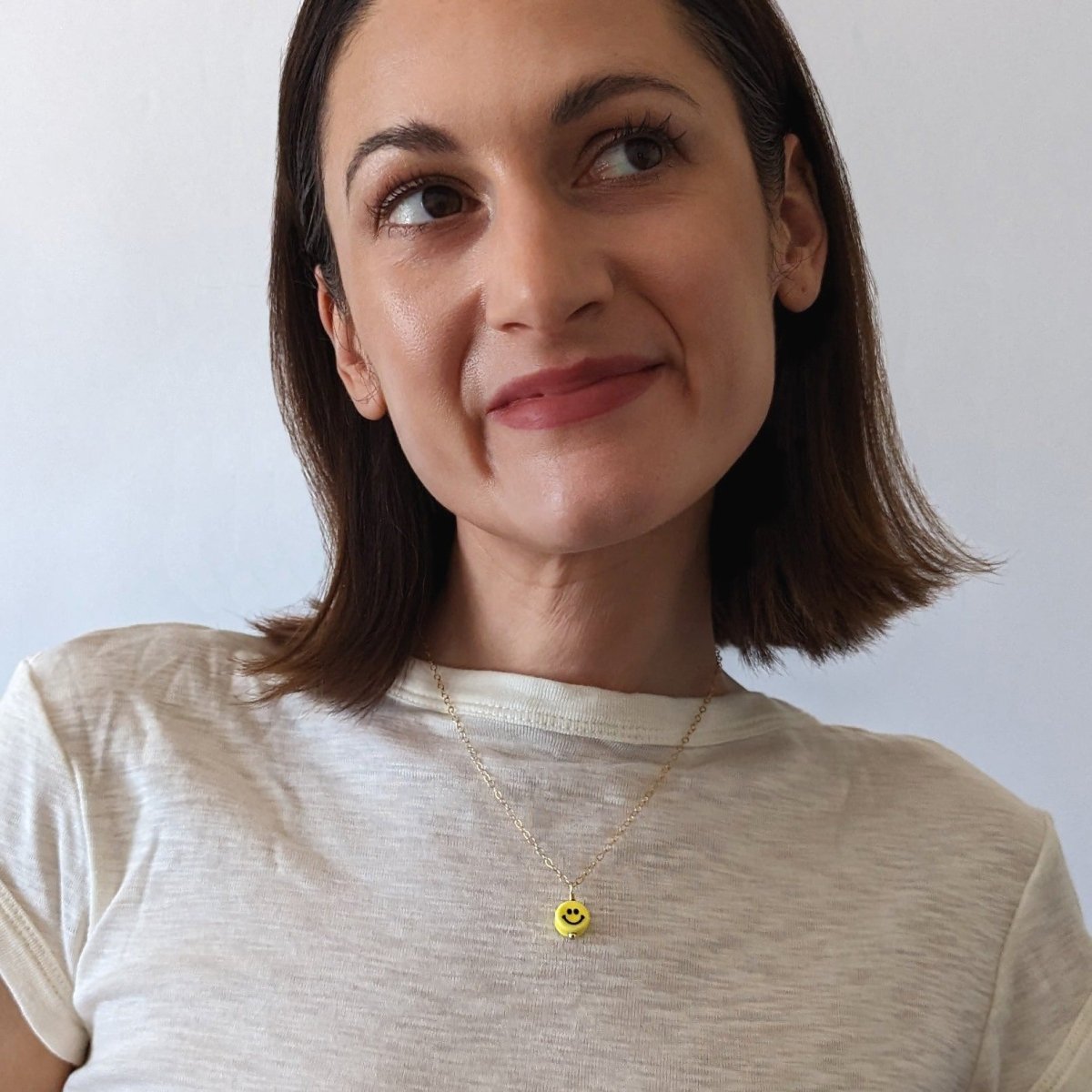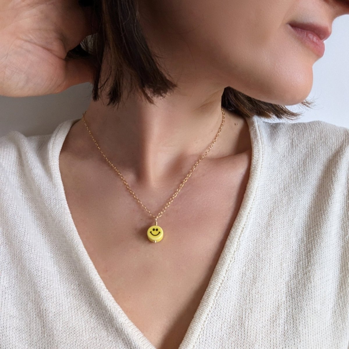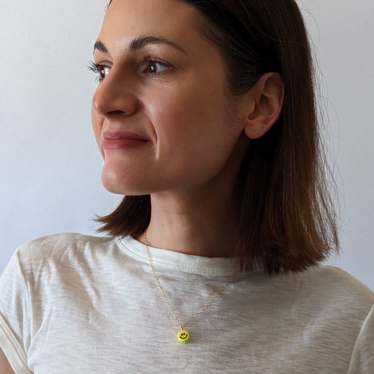 The Smiley Ceramic Charm Necklace is a playful nod to the neon-bright, carefree energy of the '90s — think Lisa Frank stickers, butterfly clips, and Tamagotchis. A hand-crafted ceramic smile charm sits on a delicate 14k gold-filled chain, striking the perfect balance between nostalgic fun and grown-up elegance. It's the kind of piece that makes people smile back.