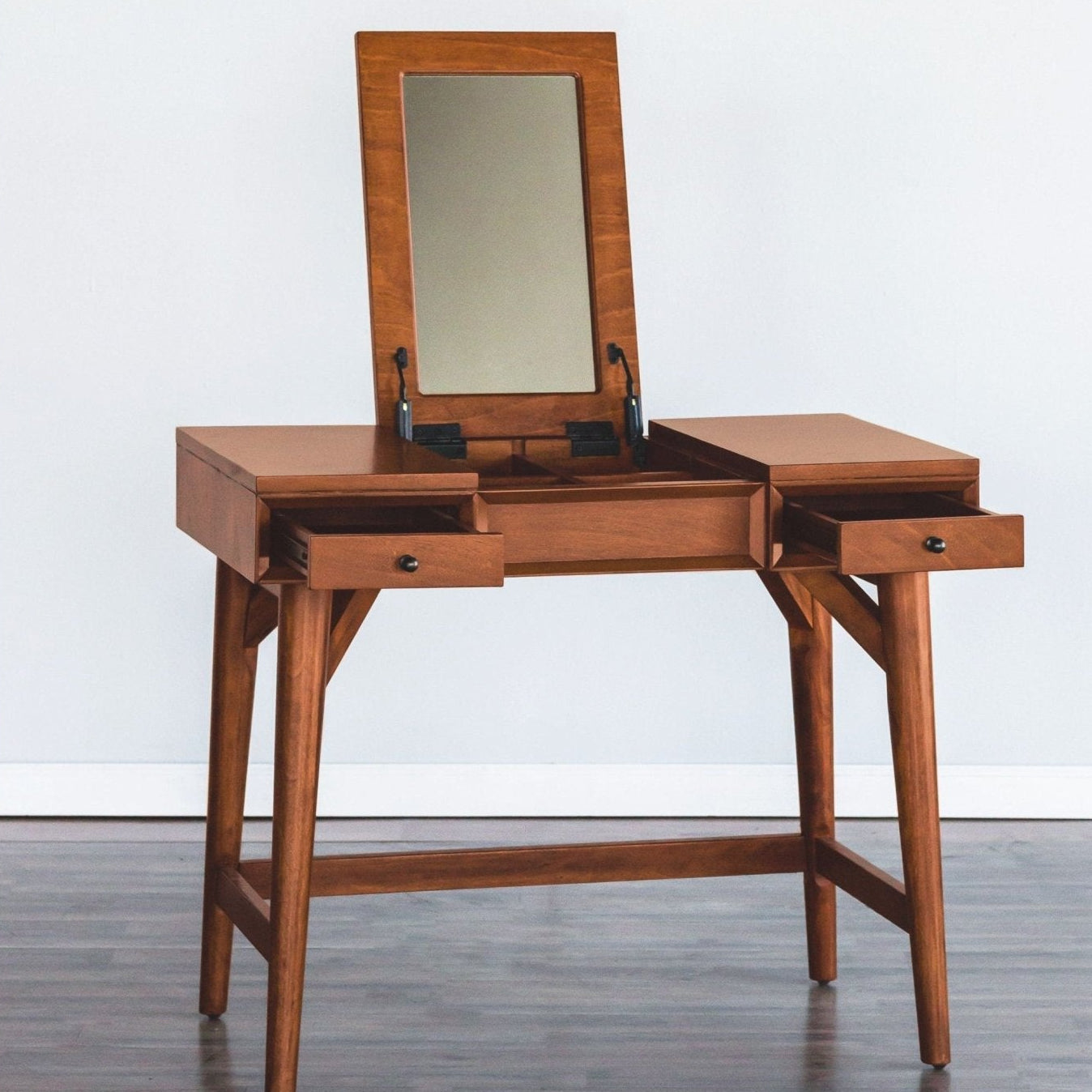 Flynn Mid-Century Bedroom Vanity with Flip-Top Mirror - Chestnut Mahogany