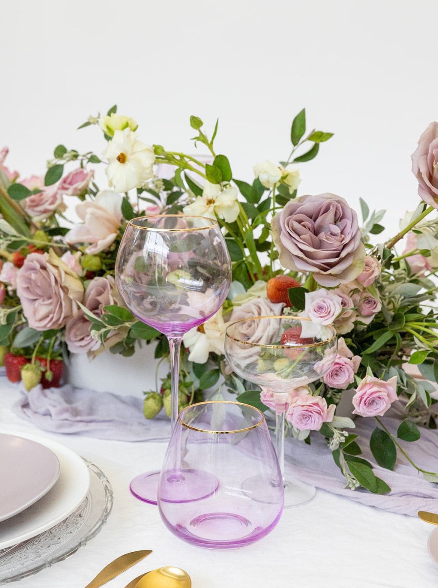 Whether you're hosting an intimate dinner party or elevating everyday moments, these lilac wine goblets bring gallery-worthy style to your table. The soft purple tones pair beautifully with both classic and contemporary table settings, while the gold rim adds a touch of refined luxury.