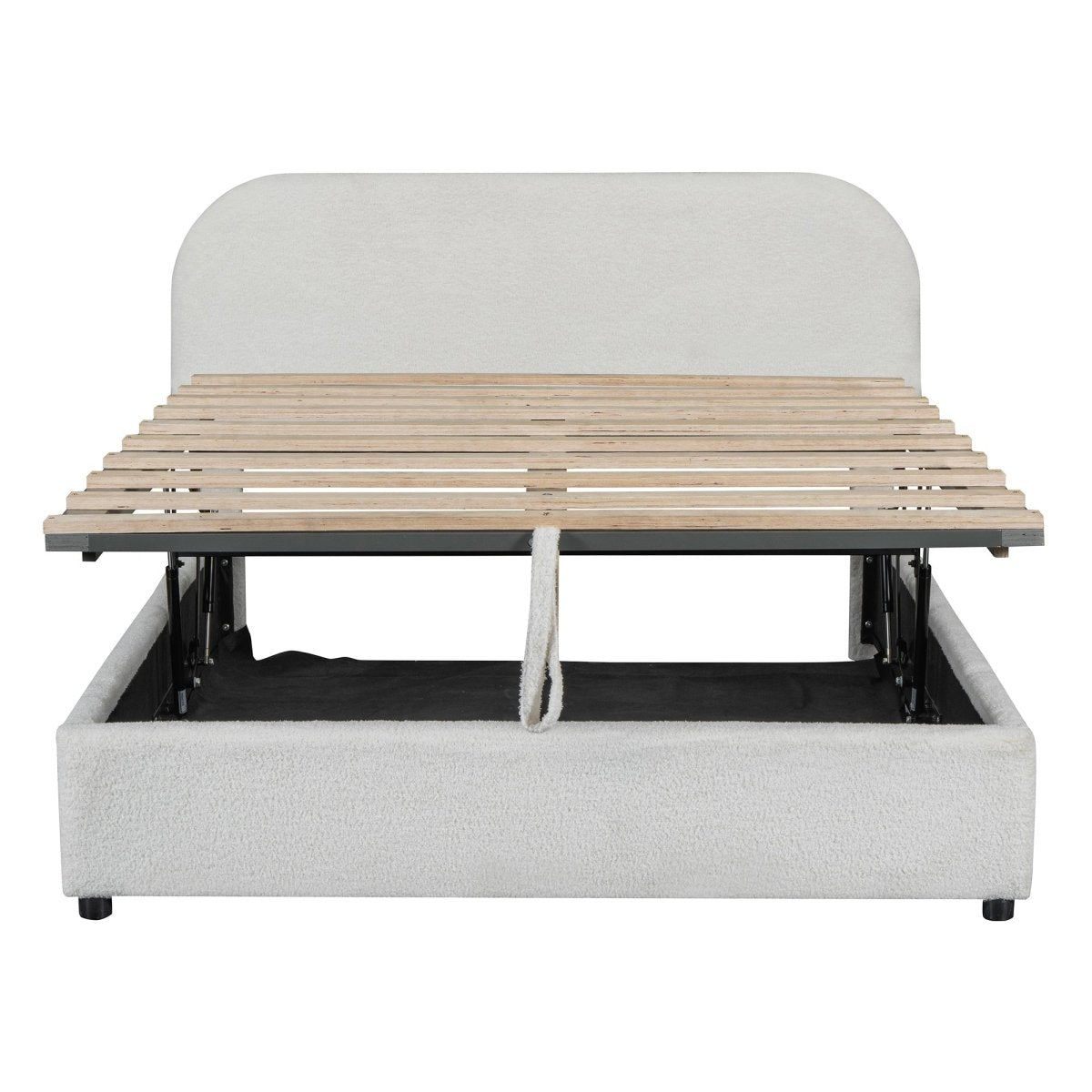 Regular price $427.00This full size upholstered platform bed combines plush teddy fleece upholstery with practical hydraulic storage functionality. The bed features a sturdy construction with plywood and MDF frame, designed to support up to 600 lbs while providing hidden storage space beneath the mattress platform.