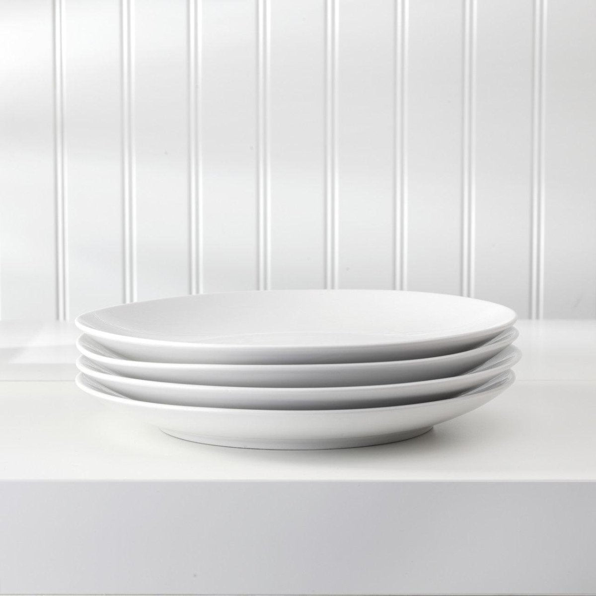 This 4-piece salad plate set from Euro Ceramica combines classic design with practical functionality. Each plate features a coupe shape with clean lines and a sleek, glossy true-white finish that complements any table setting.