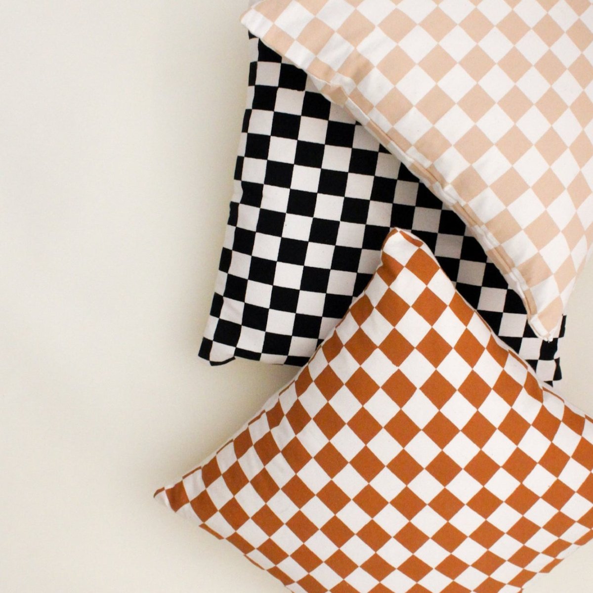 Each checkered pattern is carefully screen printed onto soft canvas material, creating a durable and vibrant finish. The double-sided design ensures the pattern is visible from both sides, maintaining a cohesive look no matter how the pillow sits on your furniture.