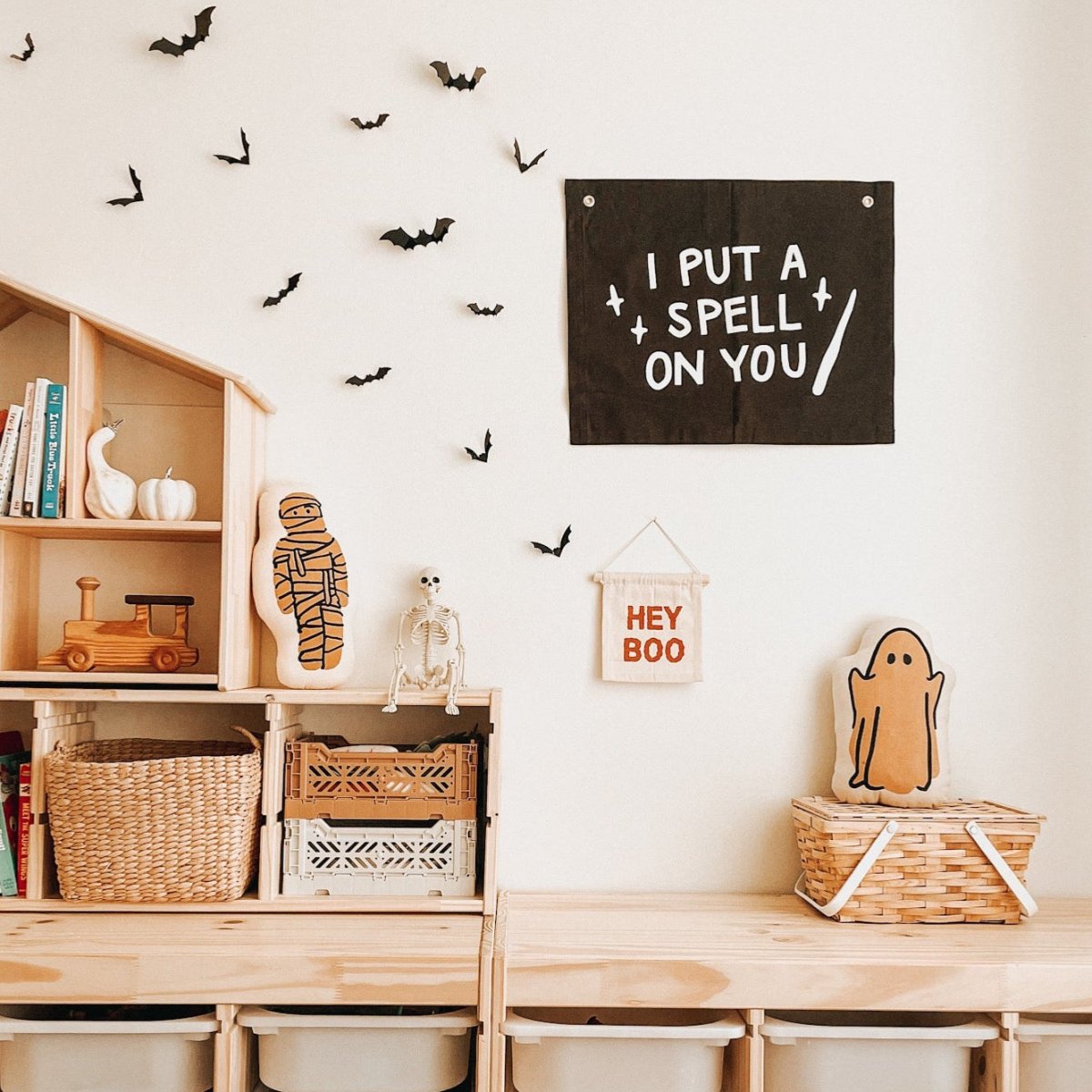 This canvas wall flag works equally well for Halloween parties, fall celebrations, or year-round decor for those who embrace a darker aesthetic. Use it in kids' rooms, nurseries, living spaces, or party venues. The black and white color scheme ensures it complements other Halloween decorations without clashing.