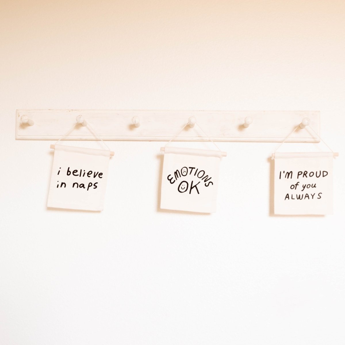 The sign features black screen printing on natural canvas, creating a clean, modern look that complements any décor style. The poplar wooden dowel and cotton thread are sourced locally from Kenya, supporting sustainable and ethical production practices. The natural canvas provides a neutral backdrop that works in nurseries, playrooms, classrooms, or home offices.