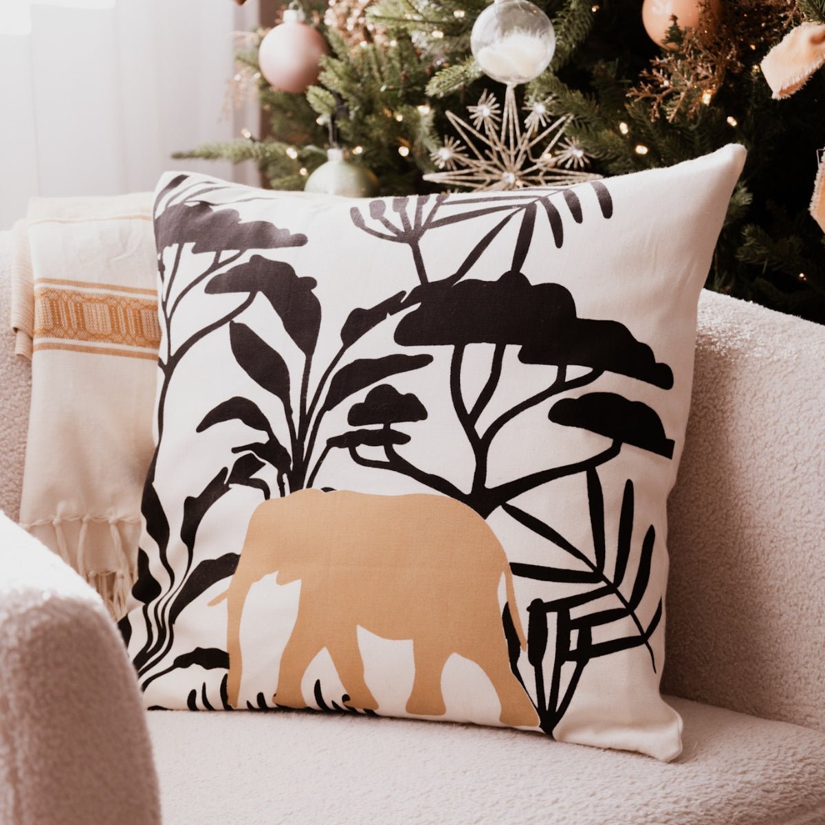 Made from soft natural canvas material, this pillow cover offers durability and a comfortable texture. The neutral canvas base complements various interior styles while showcasing the detailed elephant print. The fabric weight provides structure without compromising softness, suitable for daily use in living rooms, bedrooms, or nurseries.