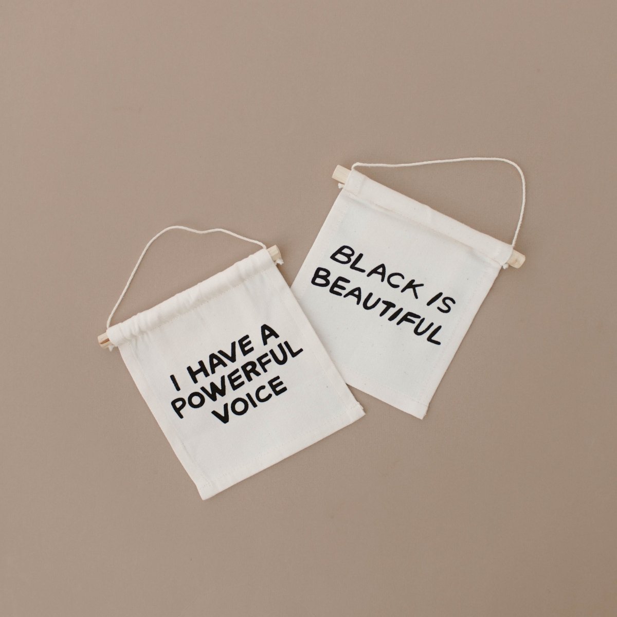 This "Powerful Voice" hang sign combines meaningful messaging with ethical craftsmanship. Each piece is sewn and screen printed by hand on natural canvas by empowered artisans in Mombasa, Kenya, making every wall hanging unique.