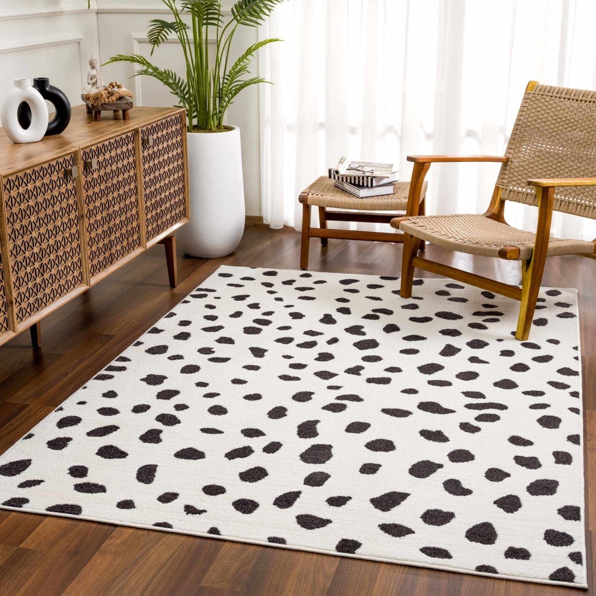 This unique rug is unlike any other you've seen before. It's super soft and cozy, making it perfect for high traffic areas in your home. This black and white dalmatian rug is perfect for any style, from traditional to modern. The high pile shag construction is extremely durable and will hold up to years of use. Ideal for bedrooms and kids rooms.