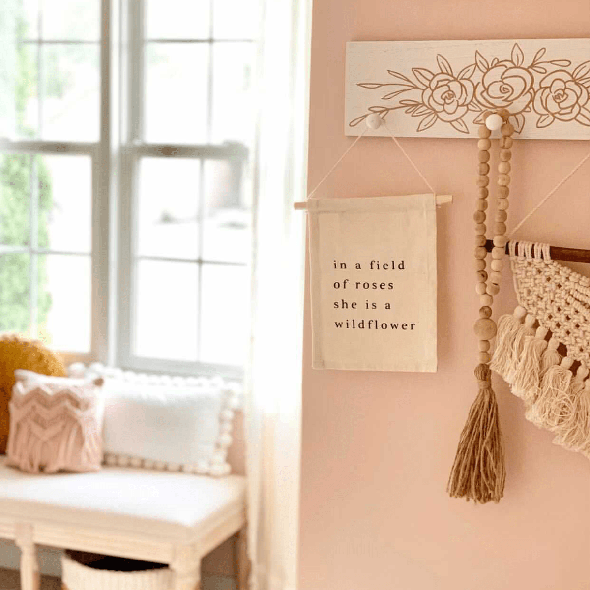 Supporting fair trade practices, this canvas wall art is created entirely by hand using traditional screen printing techniques. The natural canvas material and wildflower design add an organic, bohemian touch to nurseries, bedrooms, or living spaces.