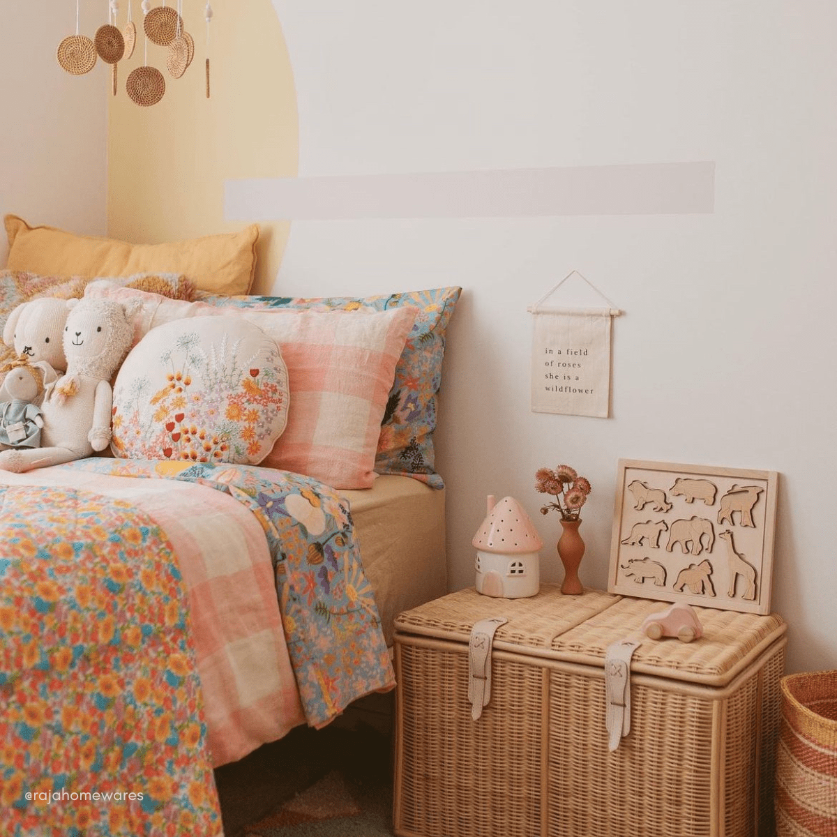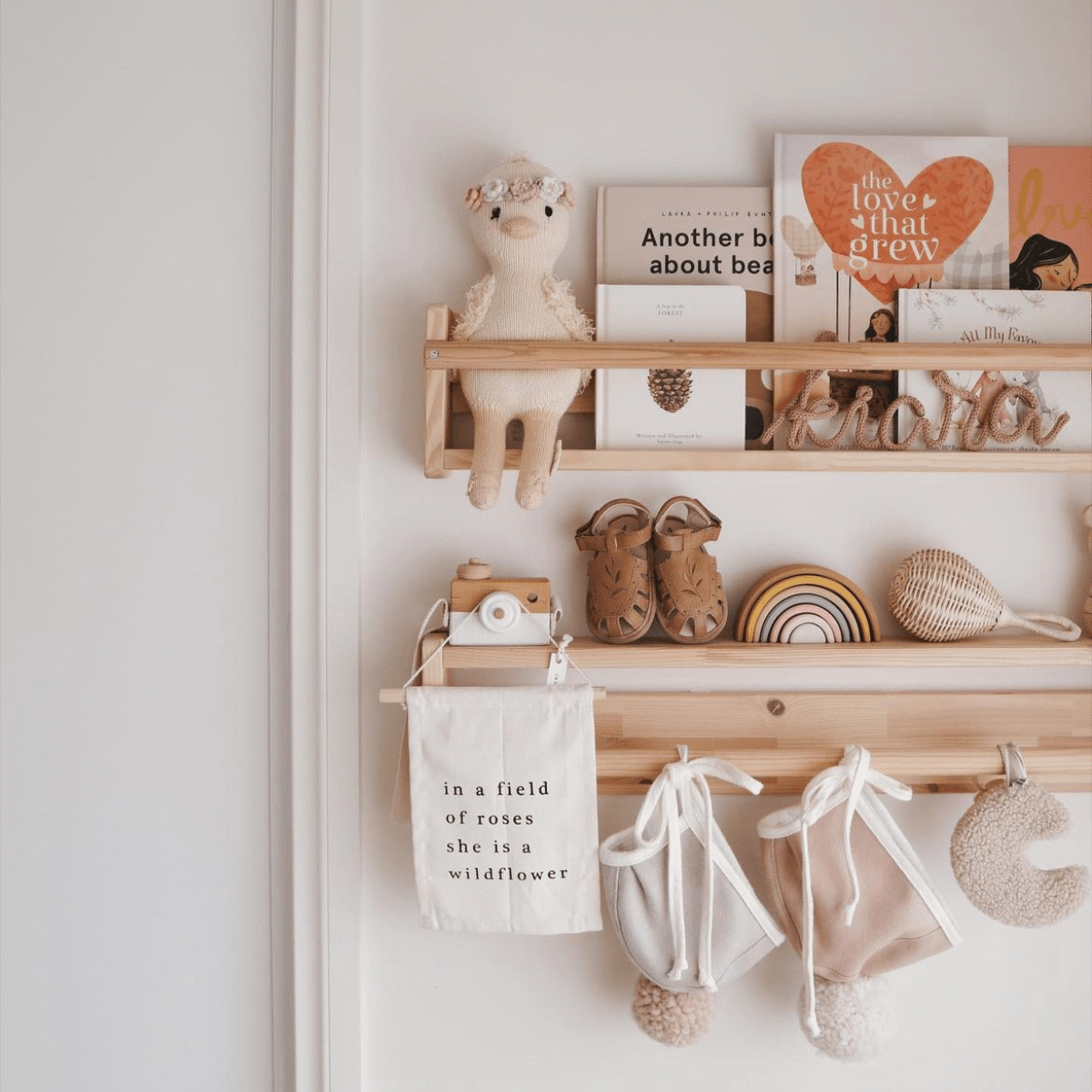 The gender-neutral wildflower design works in various settings: nursery wall decor, kids' room art, boho bedroom accents, or as a thoughtful gift for new parents. The natural canvas color and botanical print complement existing decor without overwhelming the space.