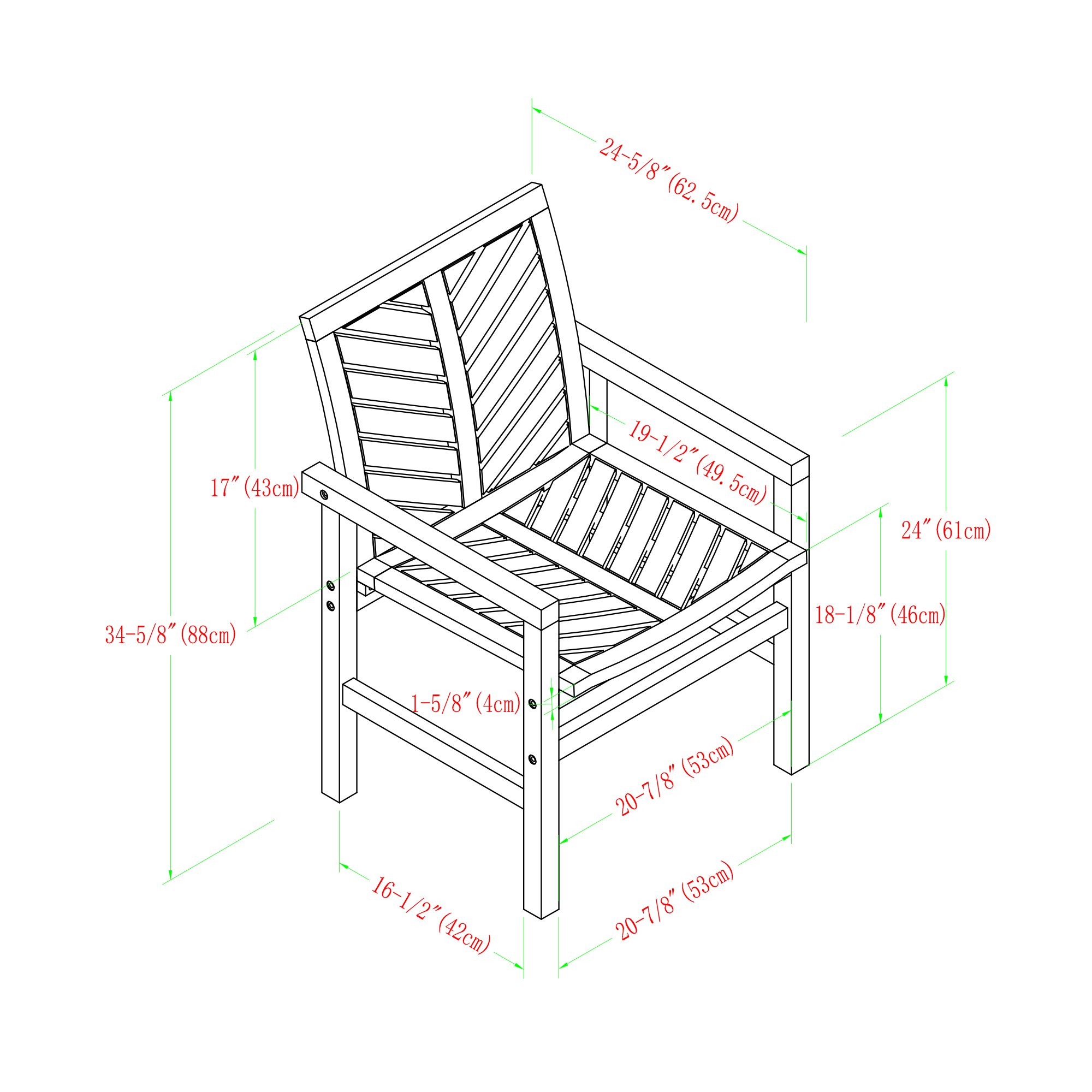 Provide outdoor seating space with these stylish patio chairs. Of a transitional and modern design style, these chairs feature a chevron inspired seat and back rest. Made of acacia hardwood in a stained finish to complement with the outdoors. Set in your backyard, or on your patio, deck, or porch to lounge on while you enjoy the sunset or chat with a friend. This set includes two chairs.
