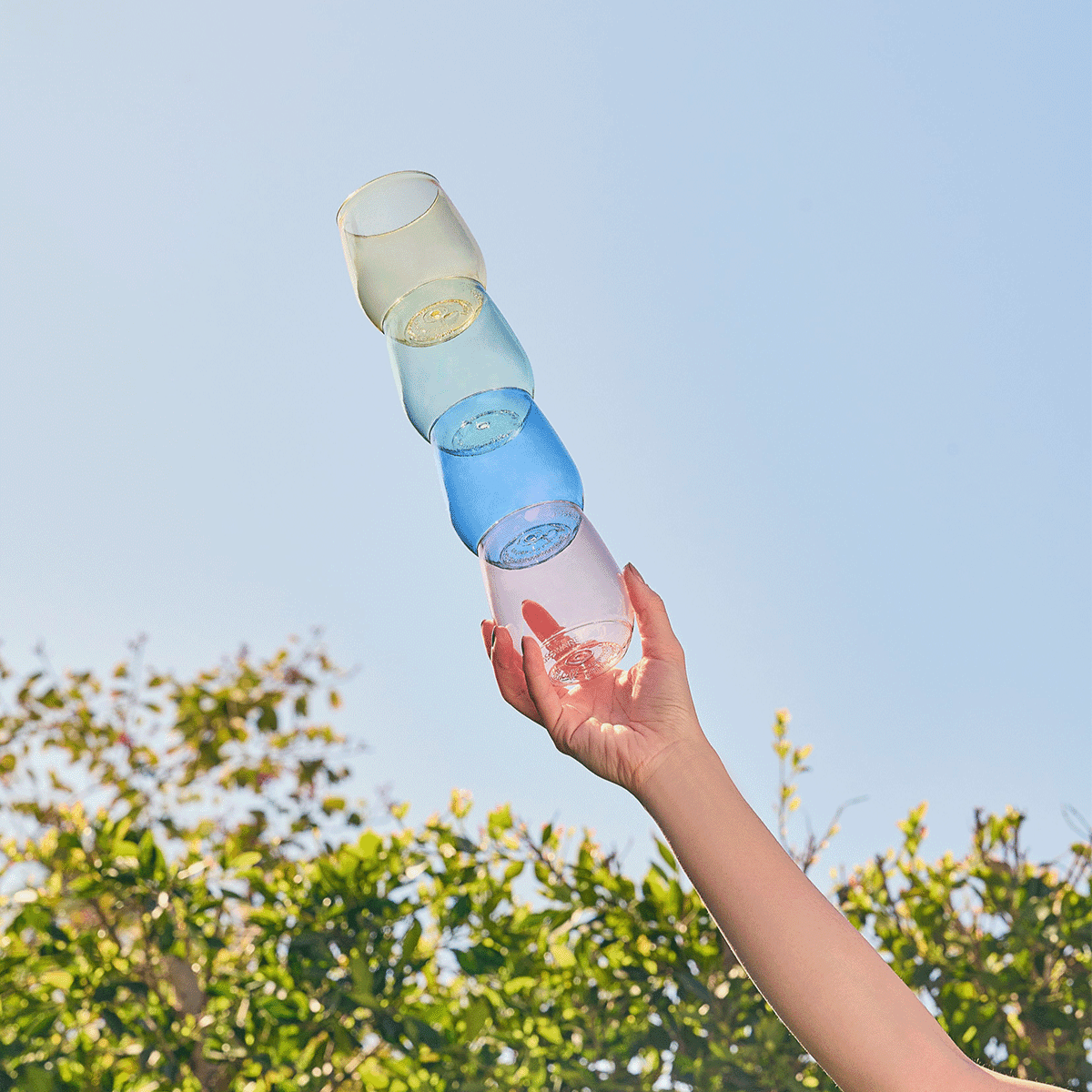 Each glass is made with up to one post-consumer plastic water bottle, transforming waste into functional drinkware. The glasses are 100% recyclable (#1 curbside recyclable), allowing you to maintain an eco-conscious lifestyle without compromising on style or durability.