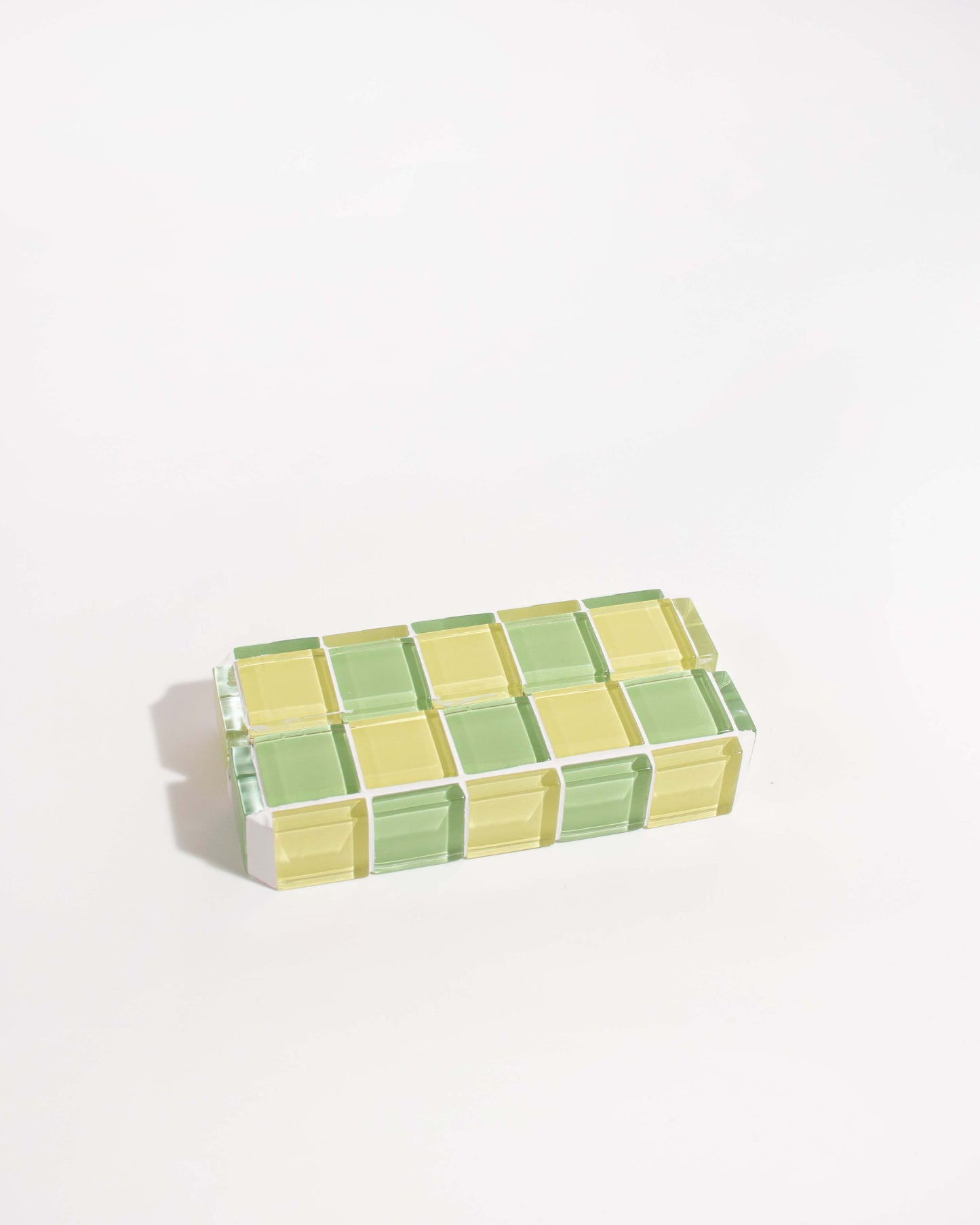 Showcase your favorite memories or keepsakes with this handcrafted glass tile picture stand in green and yellow hues— a stylish and functional display piece perfect for photos, greeting cards, business cards, or table numbers.