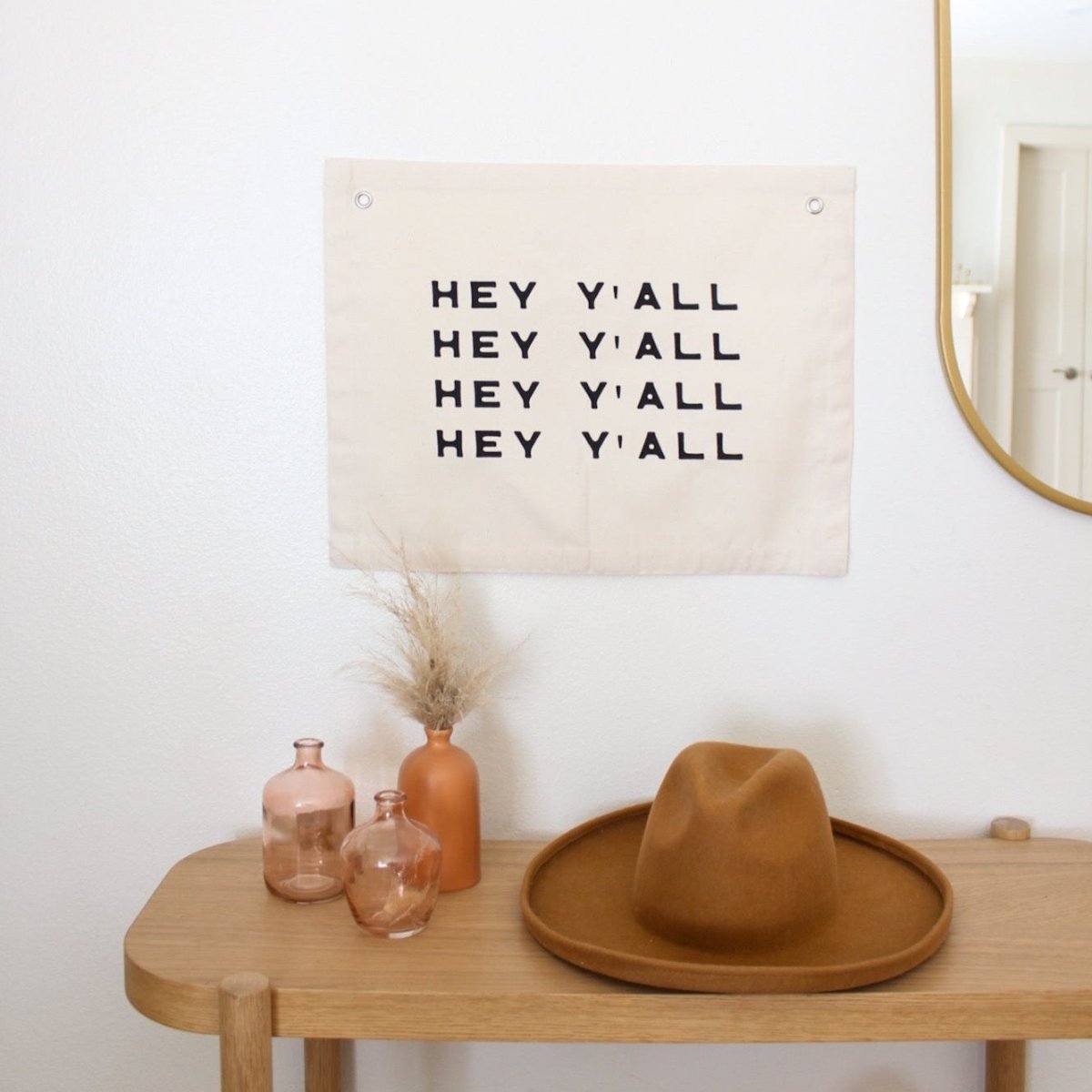The 16x20 inch dimensions work perfectly in entryways to greet guests, kitchens for casual southern flair, living rooms as a focal point, or as part of a gallery wall arrangement. The natural canvas material and typography design coordinate with various decor styles from modern farmhouse to rustic southern aesthetics. Use in mudrooms, porches, or any space where you want to add welcoming southern hospitality.