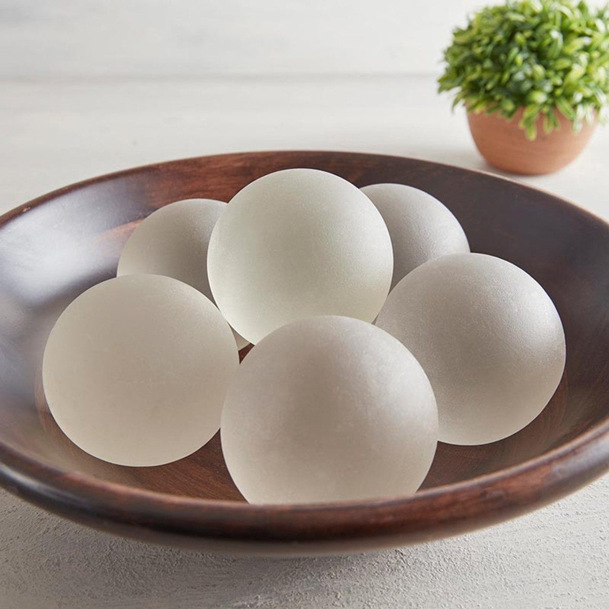 Glass balls catch and reflect natural light, adding subtle dimension to your space. Their smooth, solid construction provides weight and stability, while the matching color scheme creates visual harmony in your decor arrangements. Use them to complement existing table decor, fill vases, or add finishing touches to styled trays and console tables.