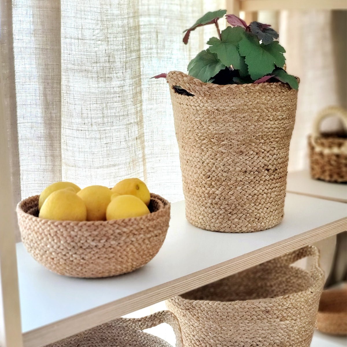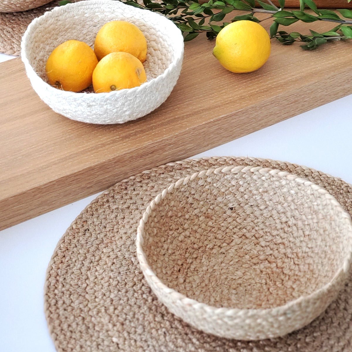 This four-piece nested bowl collection offers multiple sizes to accommodate various uses throughout your home. From displaying fresh fruit on your kitchen counter to organizing small items on your desk, these jute bowls adapt to your needs. The natural fiber construction provides a warm, organic aesthetic that complements both modern and traditional interiors.