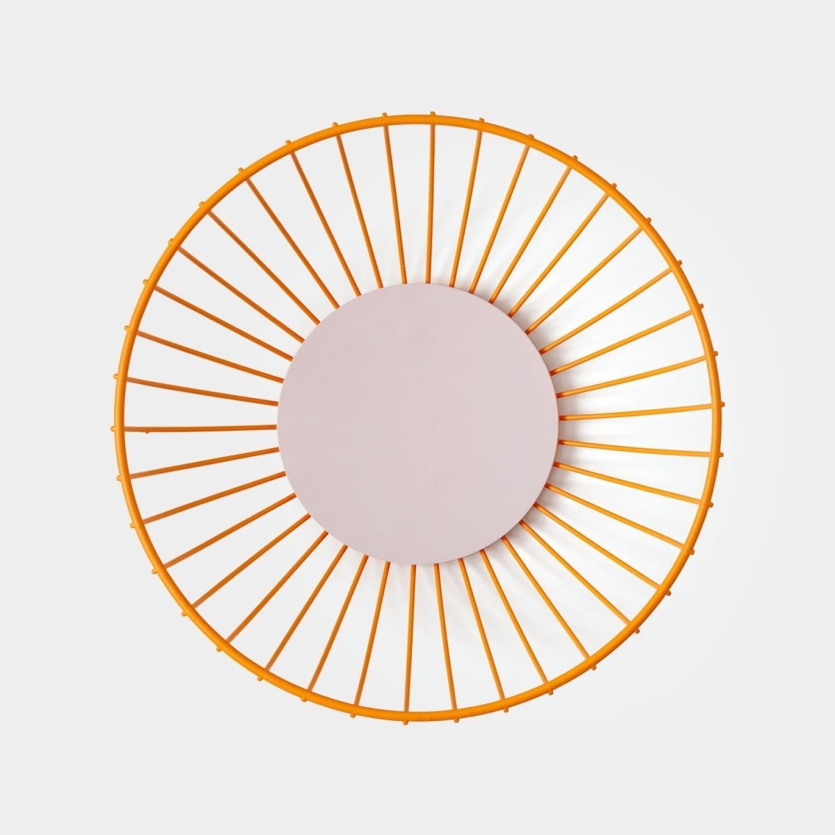 The Iris Wire Fruit Basket in vibrant orange transforms functional storage into a striking sculptural statement. Crafted from powder-coated iron wire arranged in a mesmerizing geometric pattern, this large basket creates captivating shadow play while adding a bold contemporary accent to your kitchen, dining room, or entertaining space.