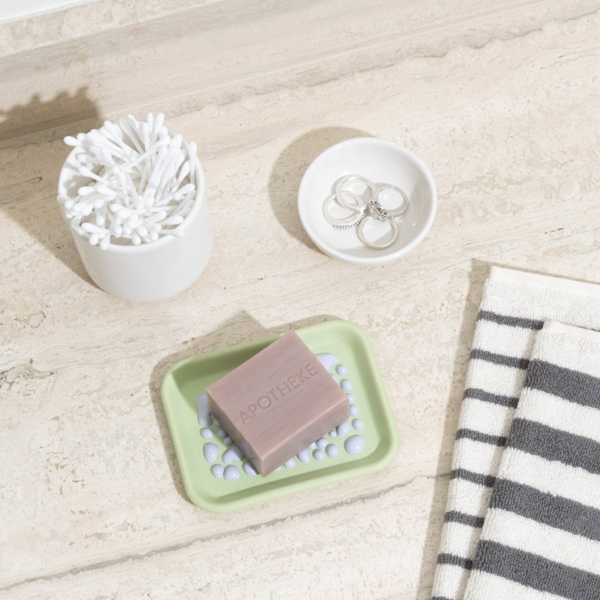 Felt+Fat Ceramic Soap Dish and Lavender Soap Bundle in Aloe