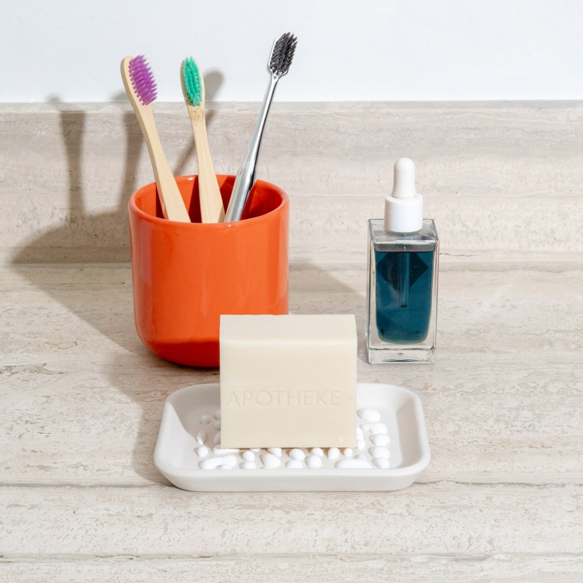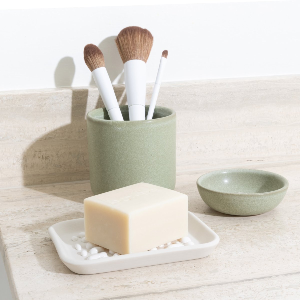 Felt+Fat Ceramic Soap Dish and Vetiver Soap Bundle in Oyster