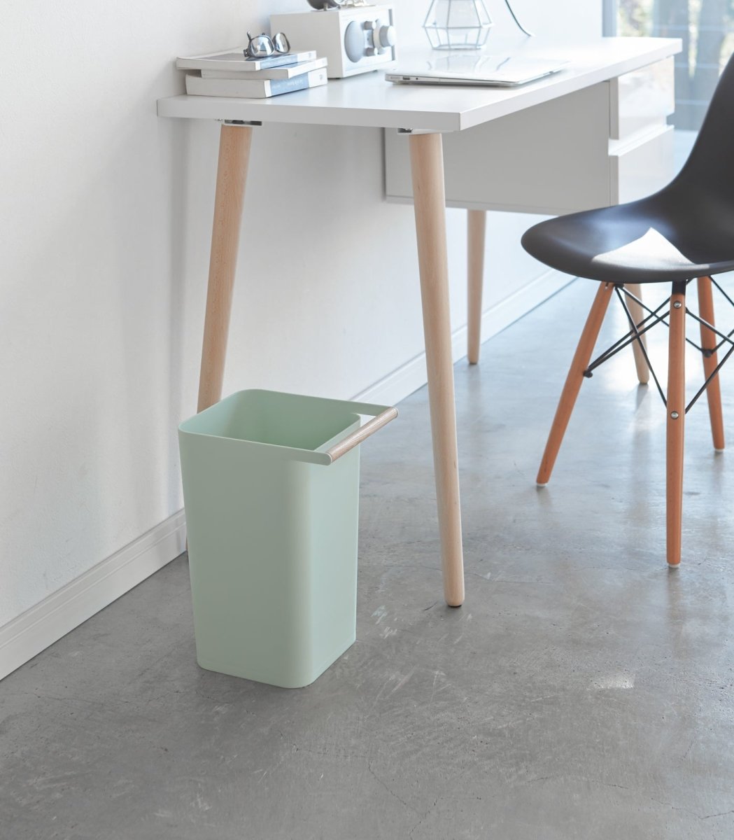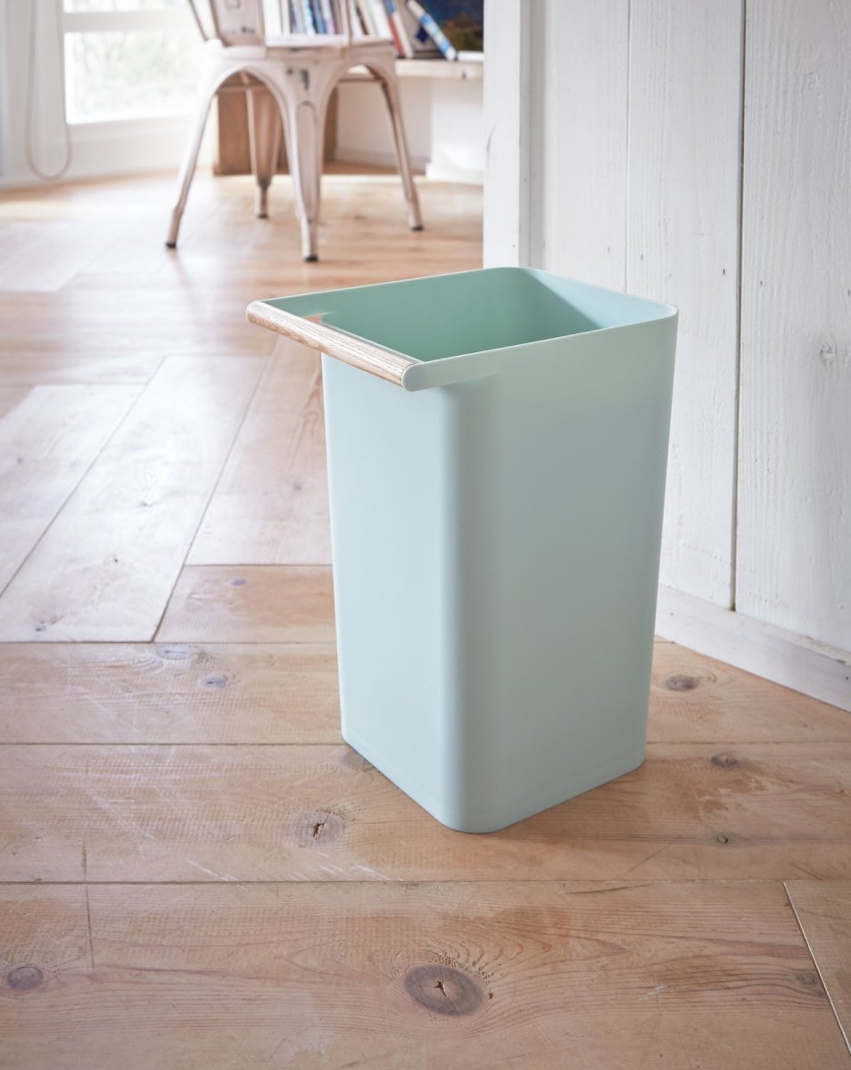 An attractive, lightweight wastebasket that works in any room of the house. The wide wooden handle makes it a cinch to pick up, empty, and move around. Not to mention, it looks good, too!