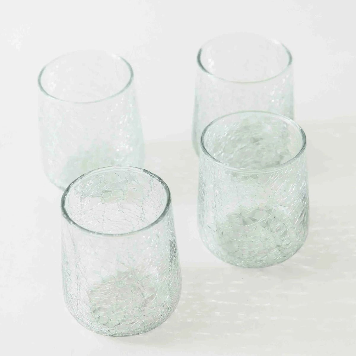 The cracked glass finish serves as a conversation starter while adding textural dimension to the smooth glass surface. This decorative element catches light differently than standard glassware, creating visual appeal without compromising the structural integrity or functionality of each goblet.