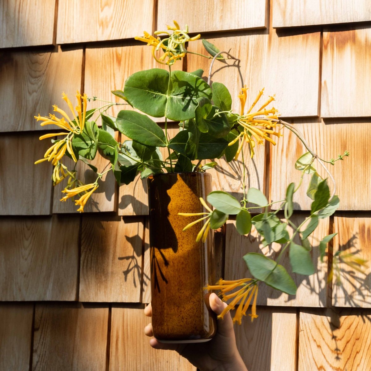 Regular price $62.40This tall ceramic vase showcases the rich, dark beauty of traditional Tenmoku glaze—a high-temperature ceramic finish known for its deep maroon to black coloring and glossy surface. Each piece is handcrafted in our Philadelphia studio, making every vase unique.