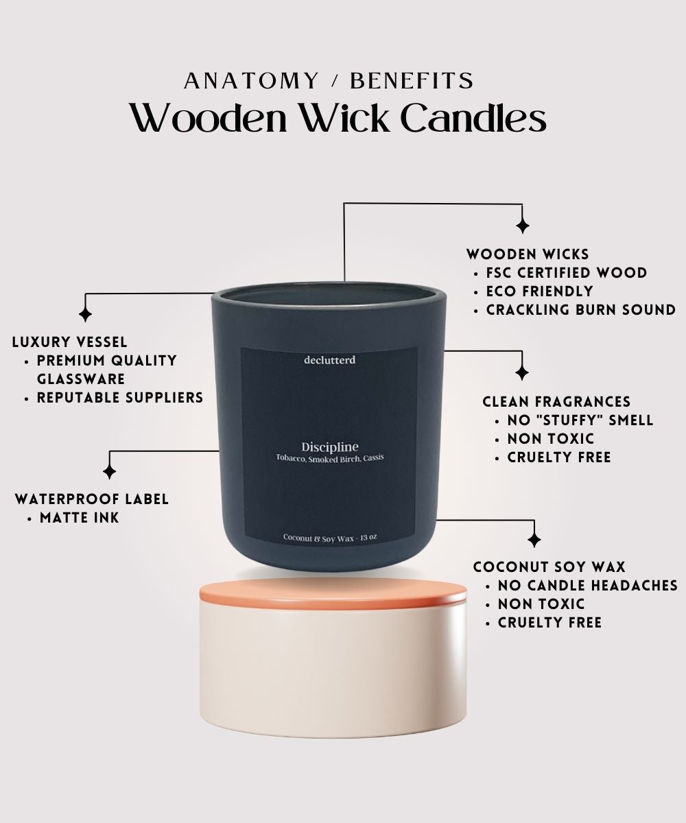 Made with a premium coconut soy wax blend that burns clean with minimal soot and no smoke. The natural wax composition is easy to trim and maintain throughout the candle's life. All fragrances used are toxic-free, paraben-free, phthalate-free, cruelty-free, and vegan.