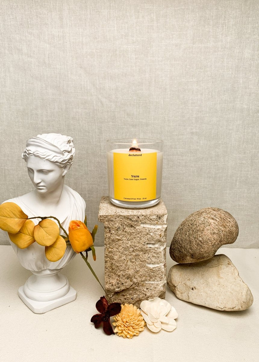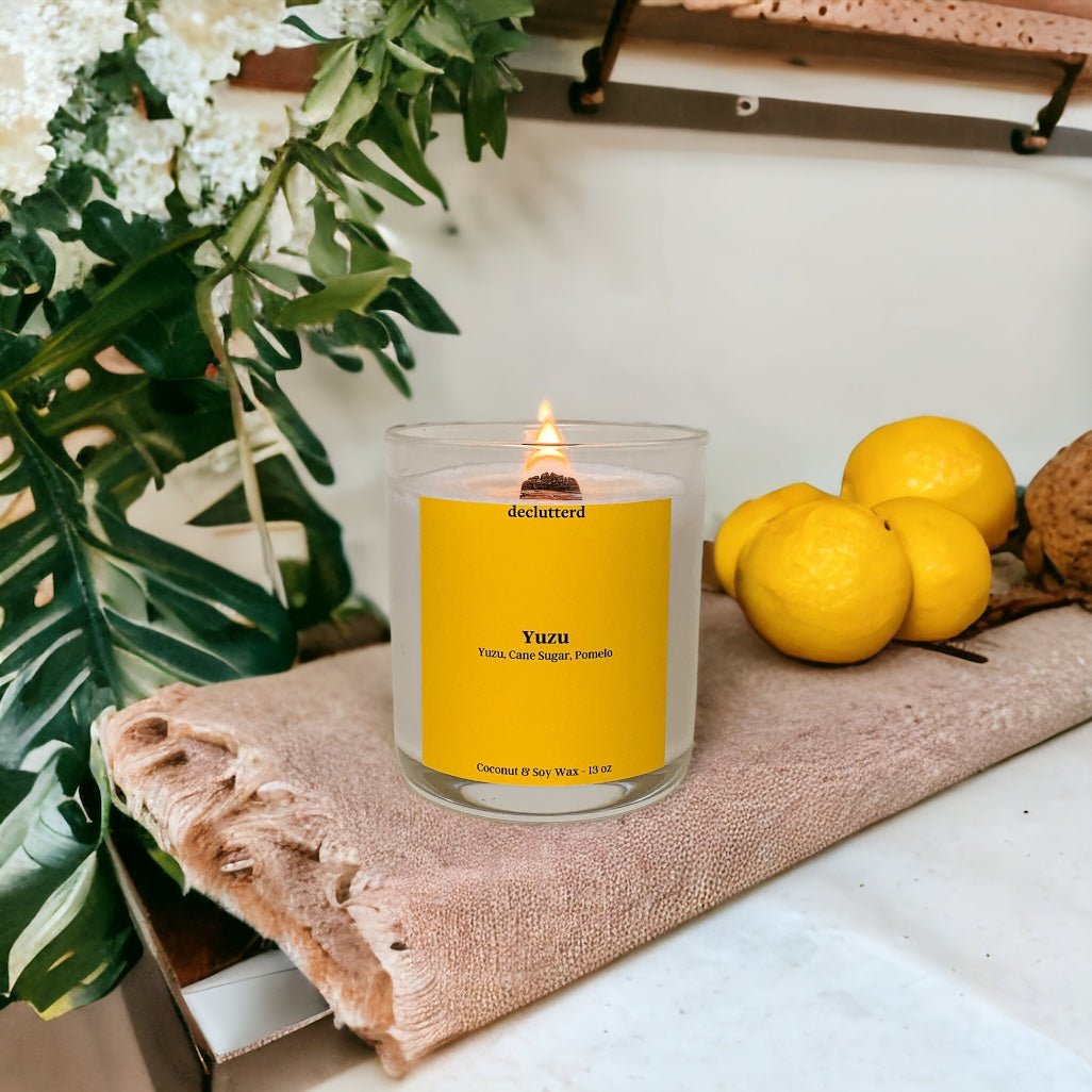A mesmerizing fusion of yuzu, sugarcane, and pomelo scents that will transport you to a citrus paradise. Immerse yourself in the invigorating essence of yuzu, with its zesty and refreshing aroma that awakens your senses. Add the sweetness of sugarcane and the bitterness of pomelo into a wooden wick candle and you'll get a fusion of bittersweet goodness that is addicting to smell in any occasion.
