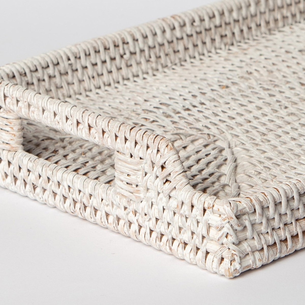 The rattan construction strikes an ideal balance between strength and portability. Despite its sturdy build, the tray remains light enough for comfortable one-handed carrying. The natural material resists everyday wear while developing character over time. The white finish maintains its appearance with simple cleaning, making this tray a practical choice for regular use in busy households.