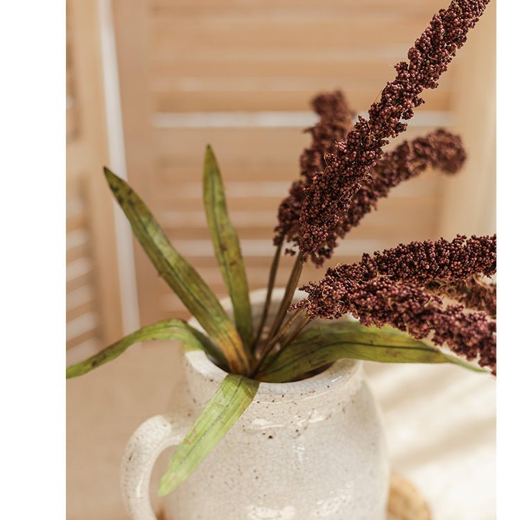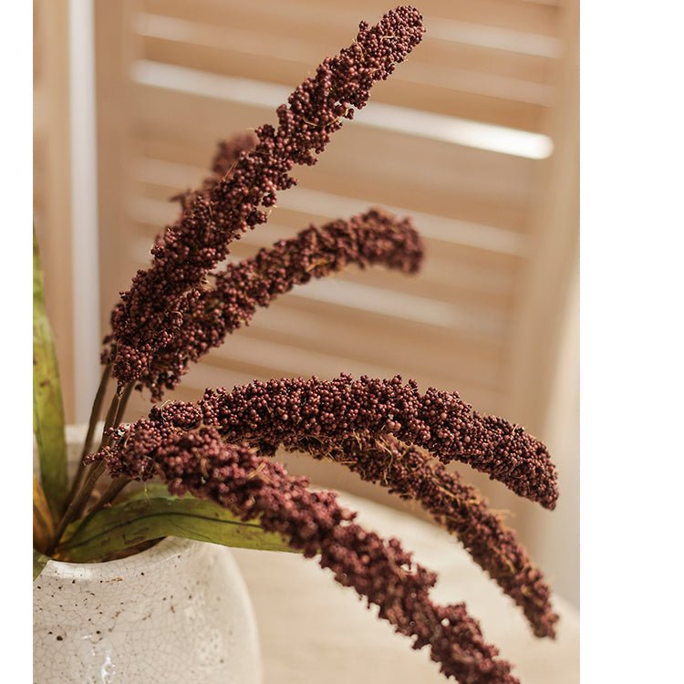 This artificial millet bundle is carefully handcrafted to replicate the appearance and texture of real millet. Its life-like design in a beautiful dark burgundy hue makes it a beautiful addition to any decor. With a height of 19 inches, it's a perfect size for any room.