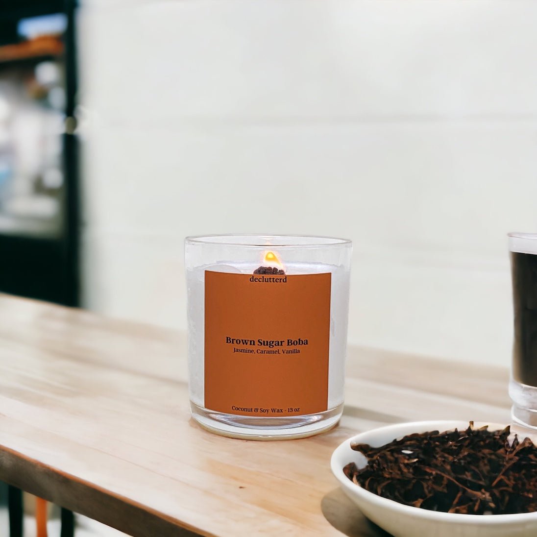 declutterd Brown Sugar Boba Wood Wick Candle - Jasmine Caramel Vanilla Scent