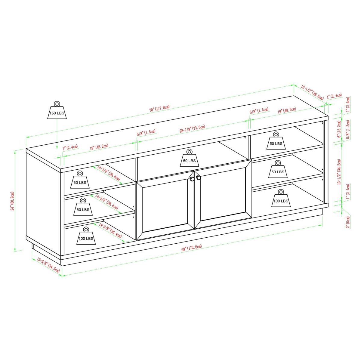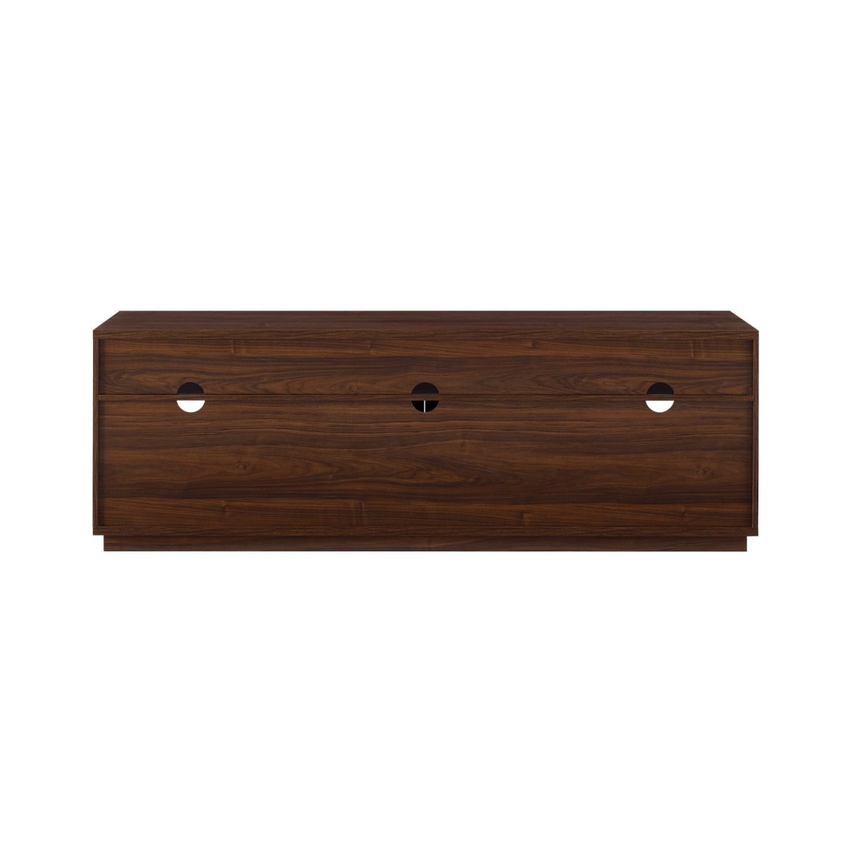 Cater to your craving for the classics with this traditionally designed TV stand. Its extra long surface is the perfect perch for your 75-inch TV or décor, and the adjustable shelving and open cubbies will make your collection of classic flicks, streaming devices, and gaming consoles feel right at home. Use the six cord management ports to curate an epic entertainment hub so your movie nights, watch parties, and solo streaming can go off without a hitch. Whether it’s there for added storage in your living room or your new go-to cozy corner for chilling out, this console has got you covered.