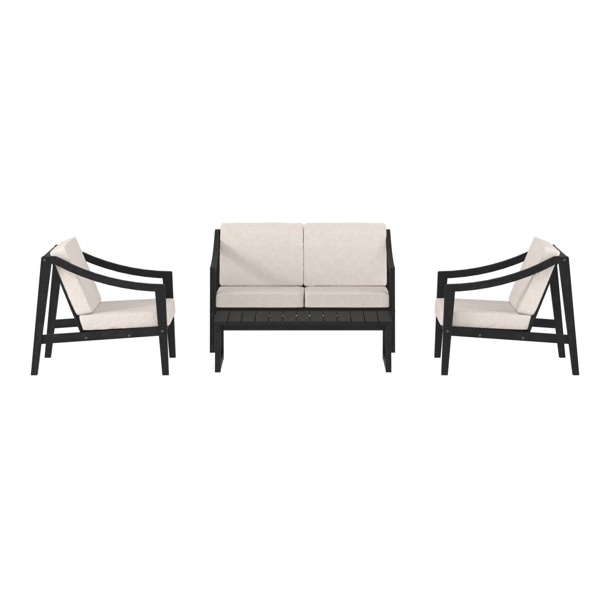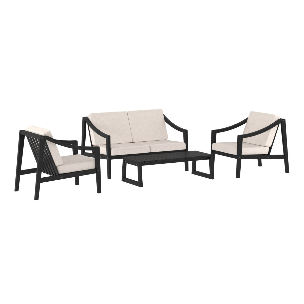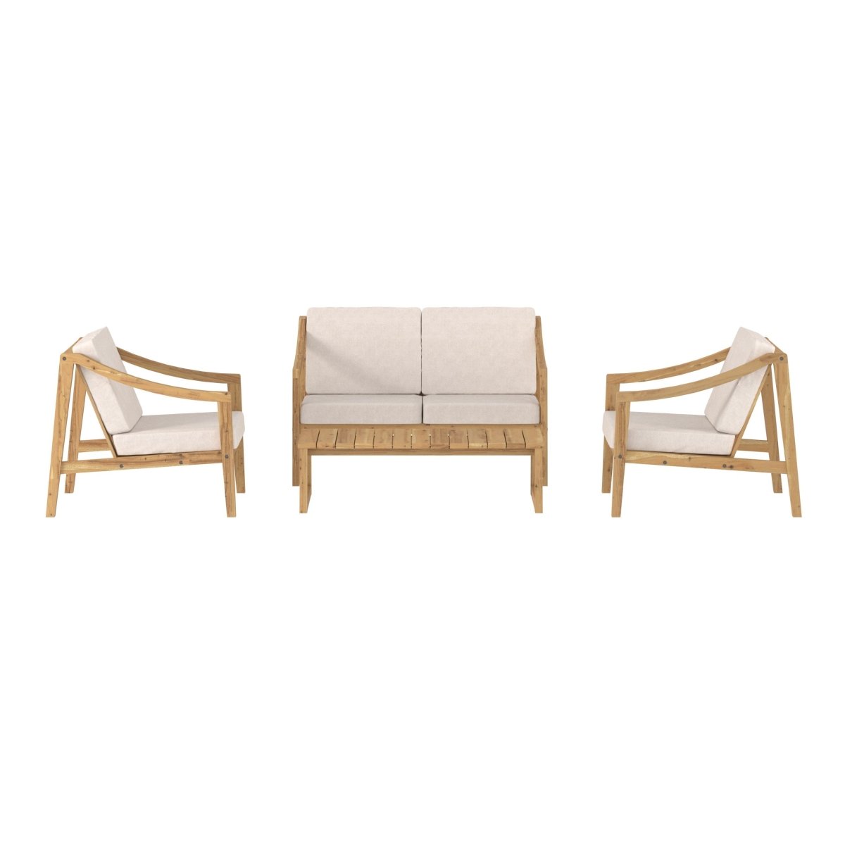 Sit in the lap of luxury with this cushioned, solid wood chat set. The loveseat and chairs’ acacia wood frames and sweeping arm rests lend a super luxe look, and the slatted top of the coffee table can support up to 100 pounds of drinks or decor. Sit and sip your favorite afternoon pick-me-up atop the soft, cushioned seats and backrests, and rest your cocktails, mocktails, or charcuterie creations atop the coffee table. Pair these four pieces with the matching side table for a set that’s sure to offer backyard bliss and plenty of room for you and your guests.