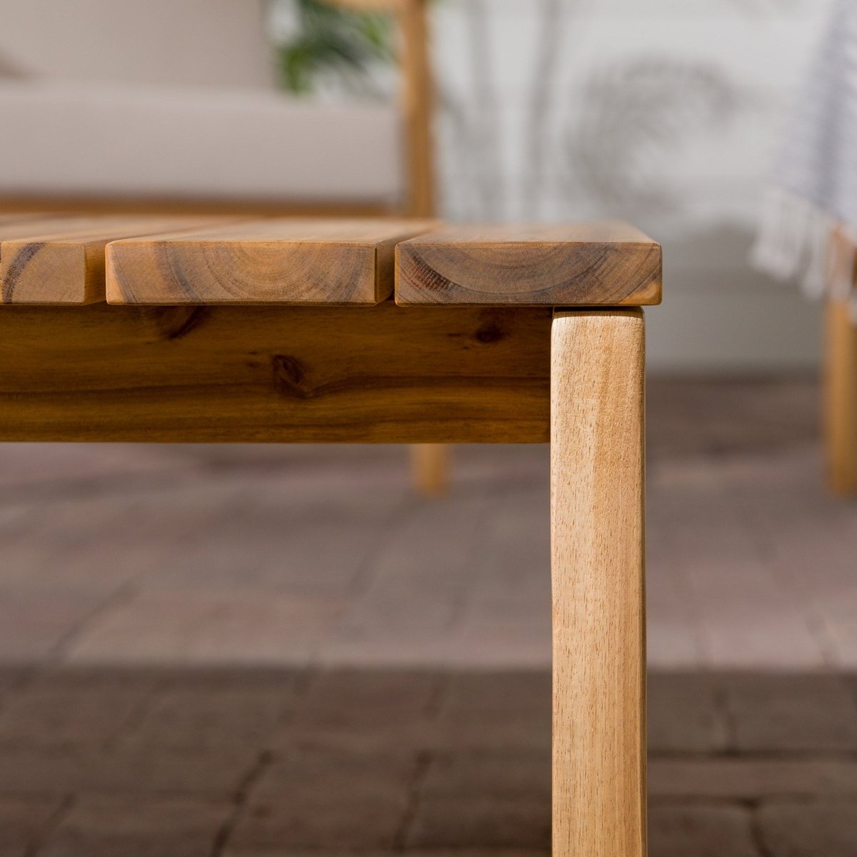 Regular price $67.00A stylish setup has never been so simple. With this slatted, solid wood coffee table and its low profile, you and your guests will have a sleek space to gather ‘round and chat with drinks and snacks. Let the table do the talking with its minimalist frame, solid acacia wood build, and beautiful stained finish. Able to support up to 100 pounds, this table is the perfect perch for citronella candles, your favorite cocktail, an array of game-night goodies, or all of the above! Whether it’s inside or out, its minimalist frame and modern build will fit right in.